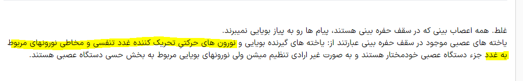 سلام وقتتون بخیر خداقوت✋ سوال 4 تمرین یادبگیریم همین باکس برای غلط بودنش میشه گیرنده های پیکری(درد) رو در نظر گرفت؟ چون اونا دیگه تو لوب های بویایی وارد نمیشن باتشکر🙏