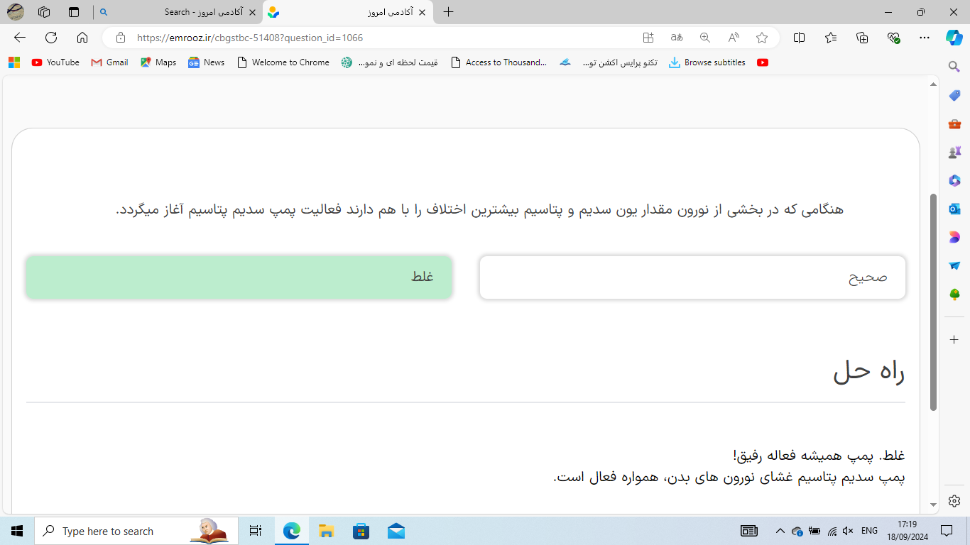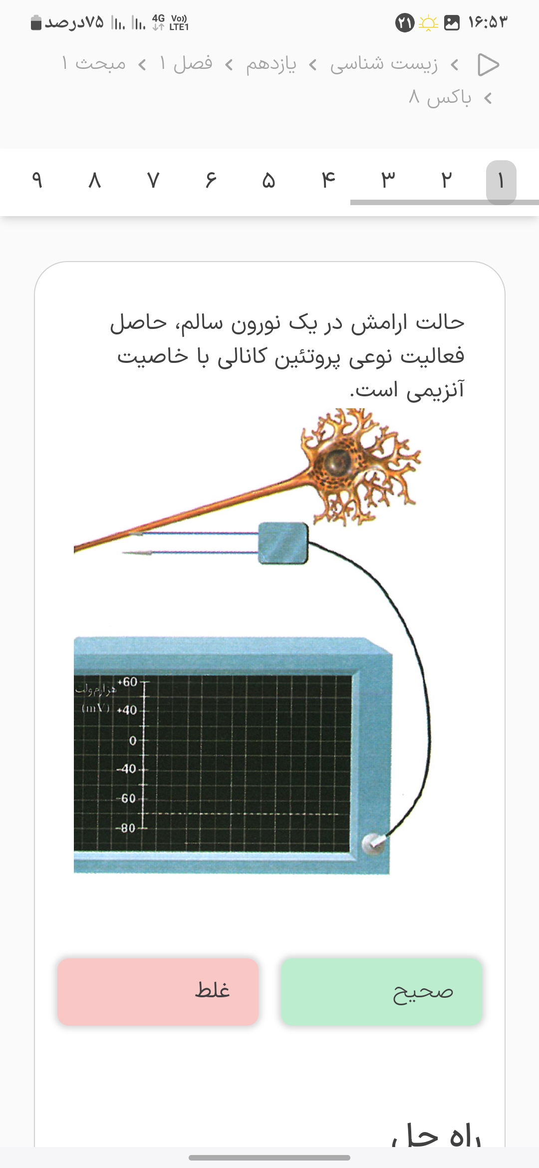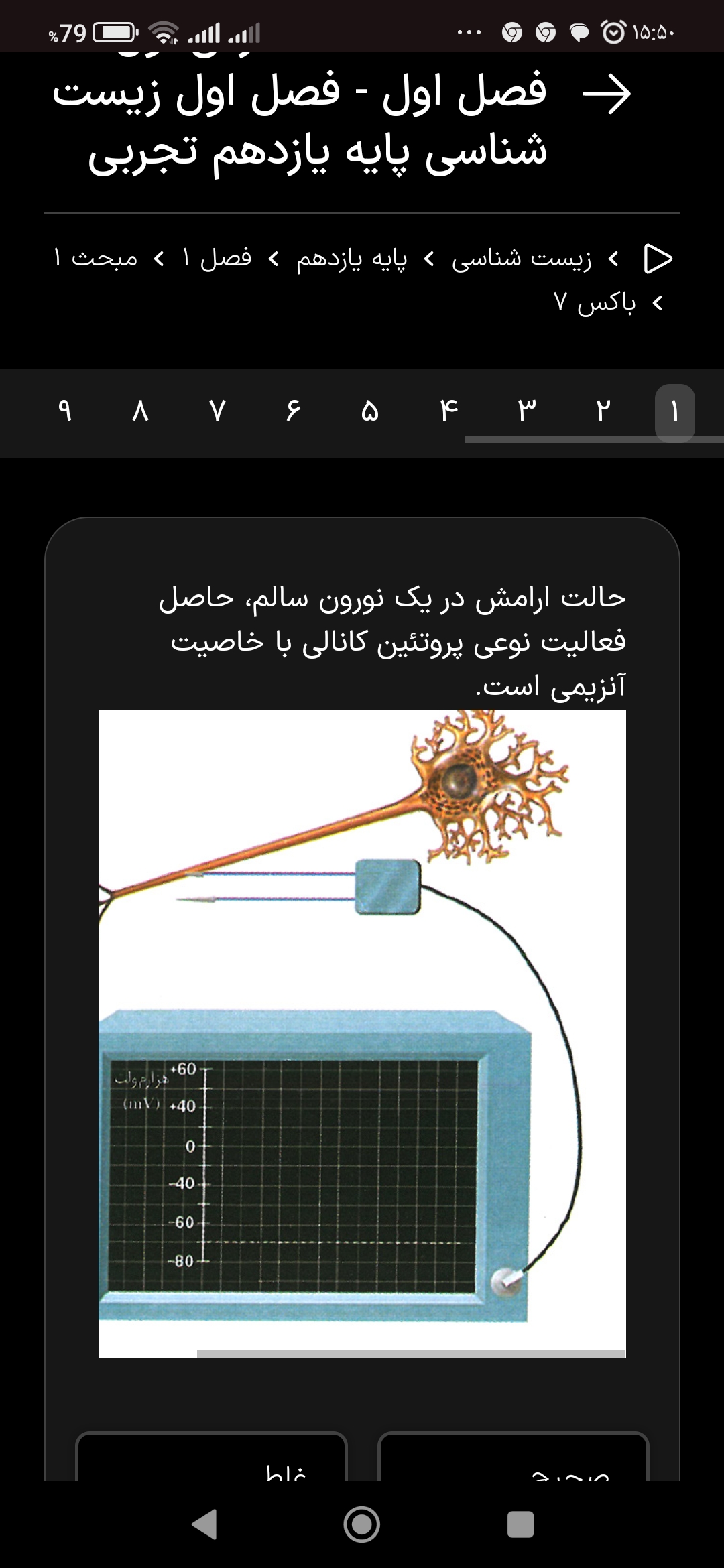 سلام وقت بخیر ، لطفا میشه این تست از تمرین ها رو مجددا بررسی کنید . حالت آرامش حاصل فعالیت بیشتر پمپ هست و در پاسخنامه هم همین رو گفته ولی جمله رو درست گرفته در حالی که پمپ یک پروتئین کانالی نیست و به نظرم جمله باید غلط گرفته بشه