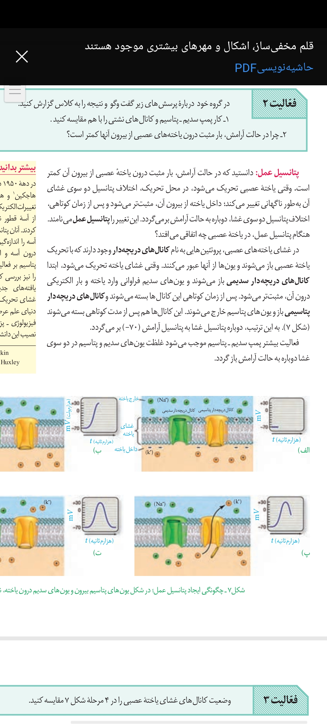 @زینب مقدم سلام وقتتون به خیر برای رسیدن به پتانسیل ارمش فعالیت کانال های دریچه دار پتاسیمی موثر هست تا ولتاژ به منفی ۷۰ میلی ولت برسد ولی برای رسیدن به حالت ارمش فعالیت پمپ سدیم پتاسیم هست چون در عکسی که دوستمون فرستادند ذکر شده فعالیت انزیمی دارد واین فعالیت برای پمپ سدیم پتاسیم هست که ATPرا تجزیه میکند ممکن هست راهنماییم کنید ممنون