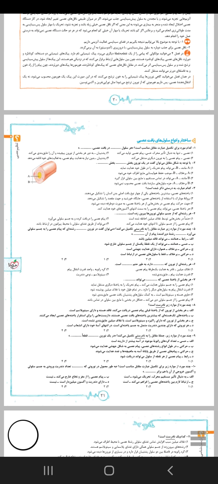 جواب دو میشه 1 جواب سه 1 جواب چهار (منظورش اکسونه یا دندریت؟اگه اکسون باشه گزینه3 ولی اگه دندریت یا گزینه 2 یا 4 چون مشخصات دندریت رو داد ) جواب پنج میشه دو گزینه؟ اگه میشه درکنار جواب توضیح بدین🌹