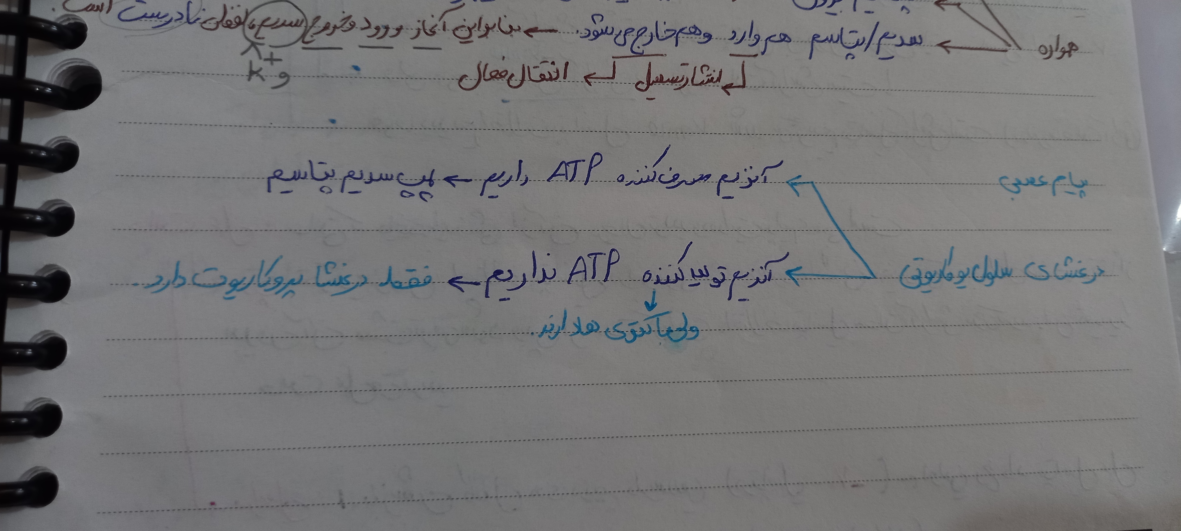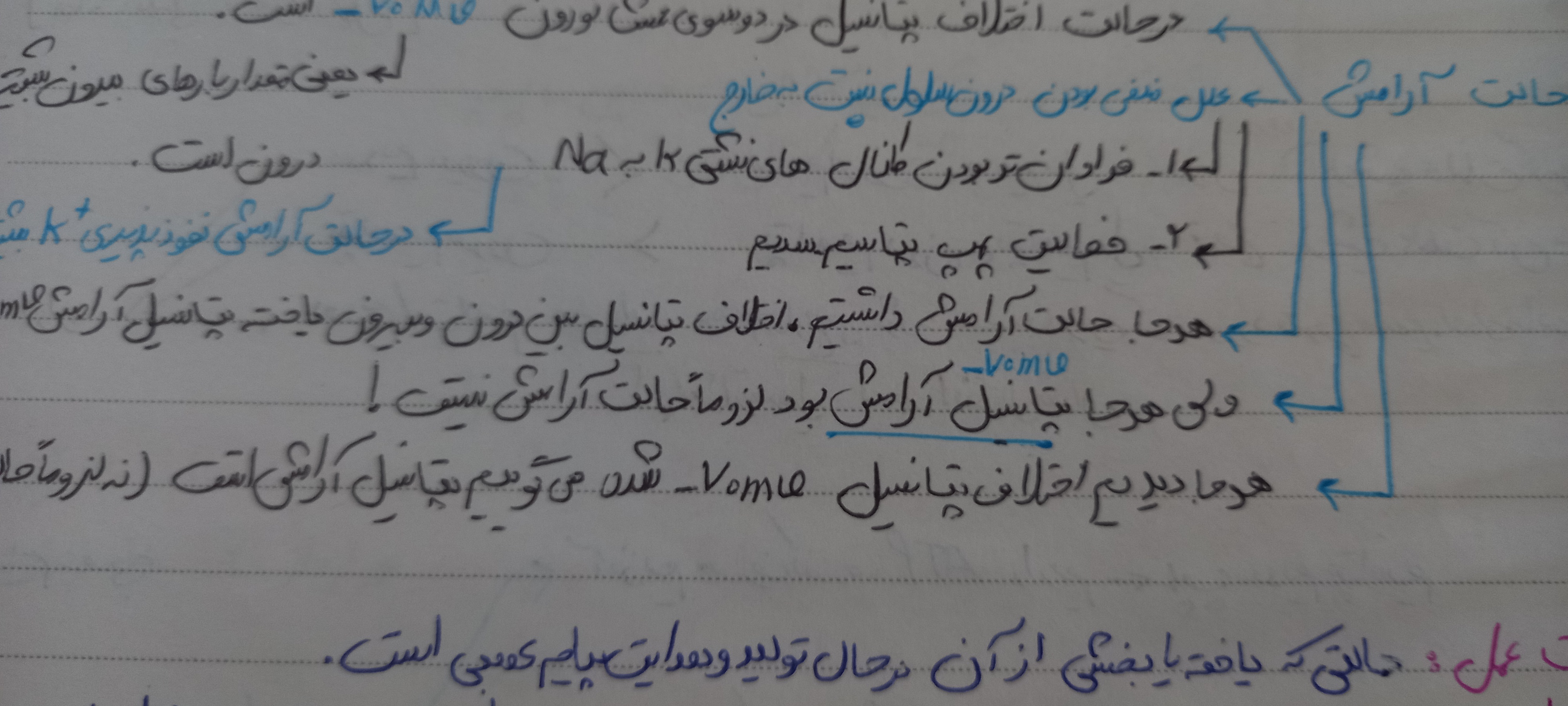 درسته دیگه در این حالت،تعداد پتاسیم هوایی که از این کانال های نشتی از سلول خارج میشن،بیشتر از سدیم های ورودی هست و همین باعث میشه که بار های مثبت داخل سلول،کمتر از بیرون سلول بشه تا حدودی و پتانسیل داخل سلول منفی تر از بیرونش بشه