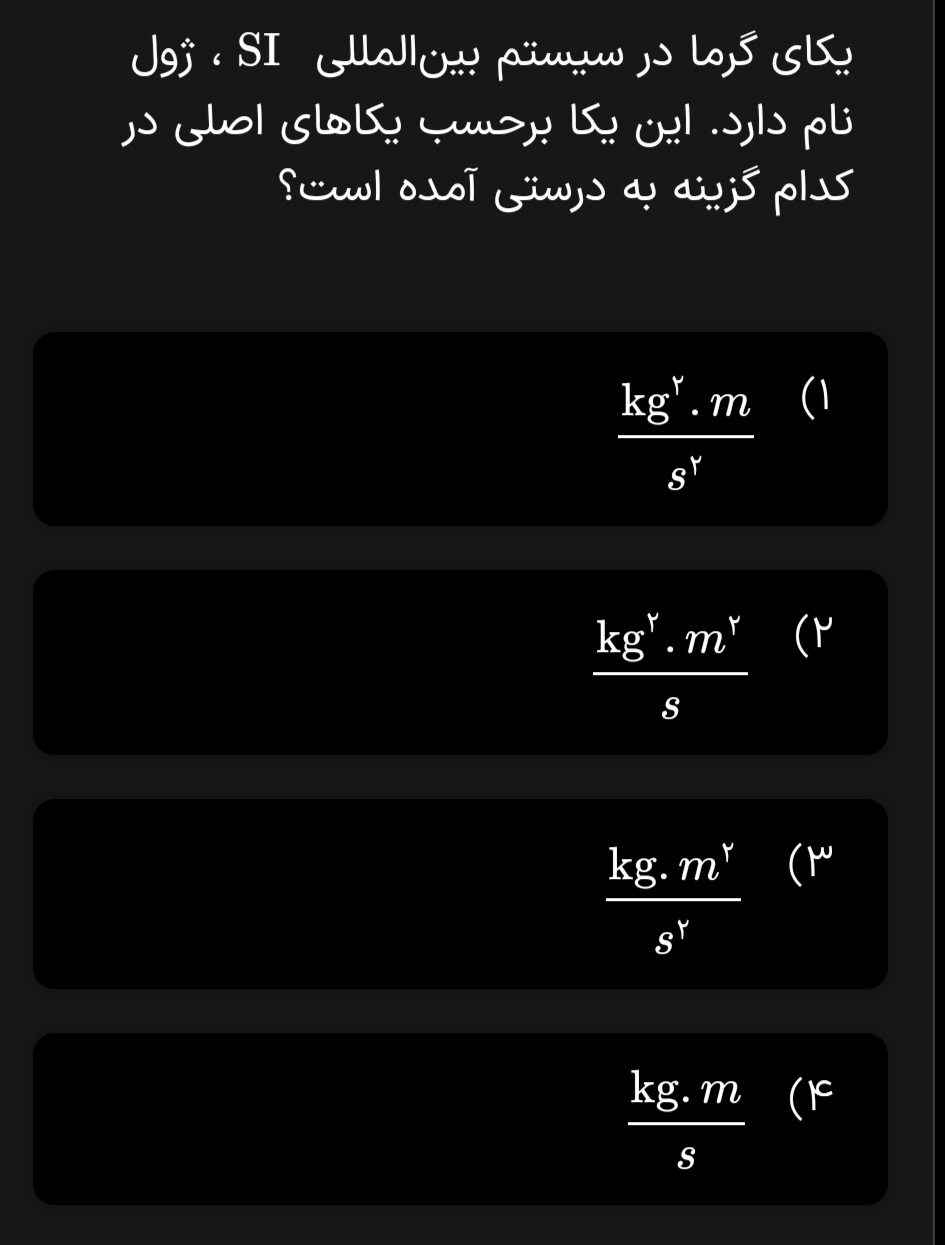 ببخشید من گزینه صحیح و ۳زدم.چون ویدئوقبل استاد فرمودن یکای فرعی فشار میشهkgm بر مجذور ثانیه... پس چه دلیلی داشت که اینجا دور در دور بشه؟