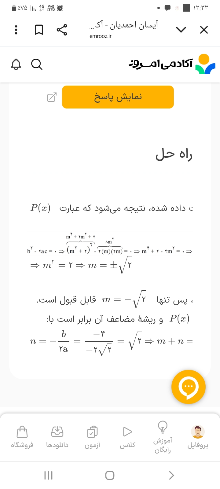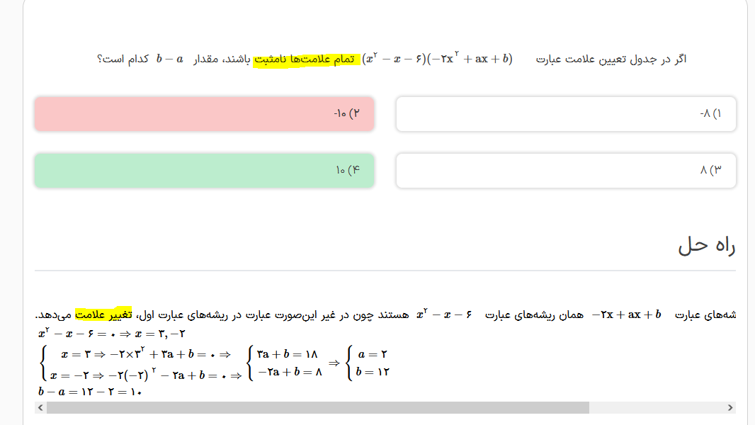 منظور این سوال از اینکه این دو عبارت ریشه هاشون مشترکه وگرنه تغییر علامت میدن چیه؟ممنونم