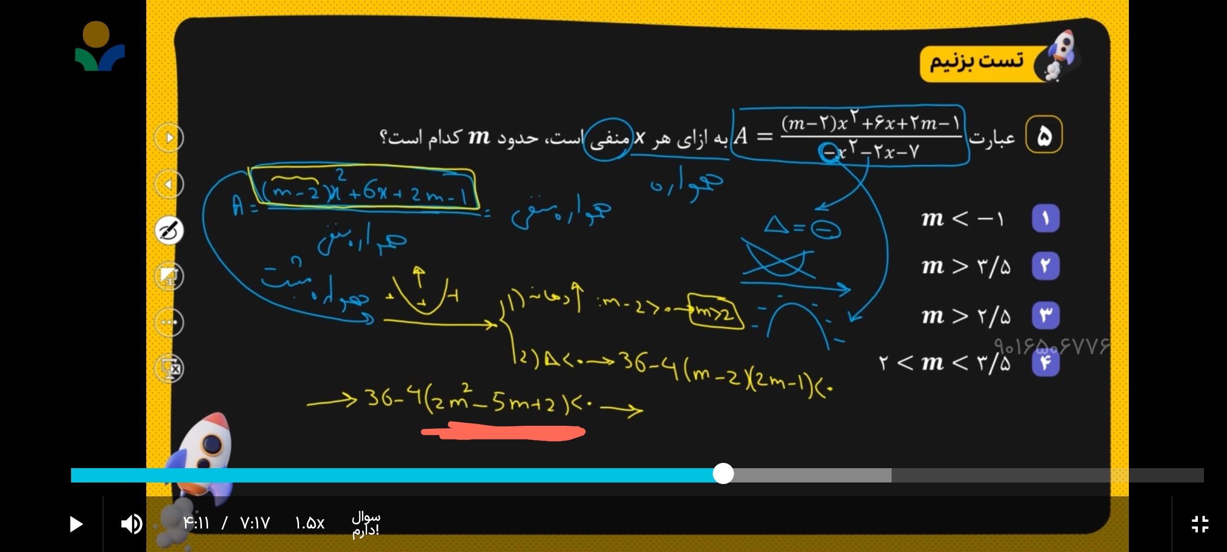 سلام مگه نباید اشتراک بگیریم بین m های بزرگ تر از دو و mهای بزرگ تر از 3.5 ک میشود m های بین 2تا 3.5 یعنی گزینه 4؟؟؟؟؟؟