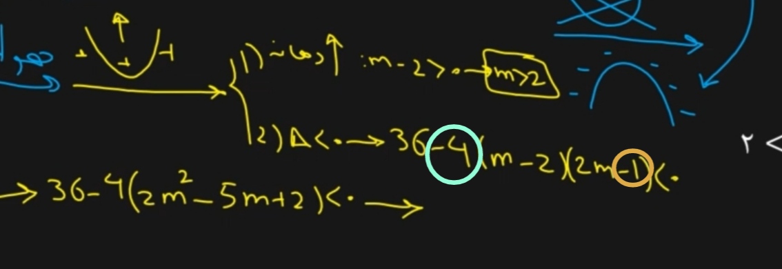 ببین از سمت راست،با علامت مربوط به متغیر با بیشترین توان شروع میکنیم مثلا توی این عبارت،m به توان دو، بیشترین توان رو داره پس علامت اون رو ملاک میگیریم ضریبش علامت مثبت داره پس از سمت راست در جدول تعیین علامت،با علامت مثبت شروع میکنیم