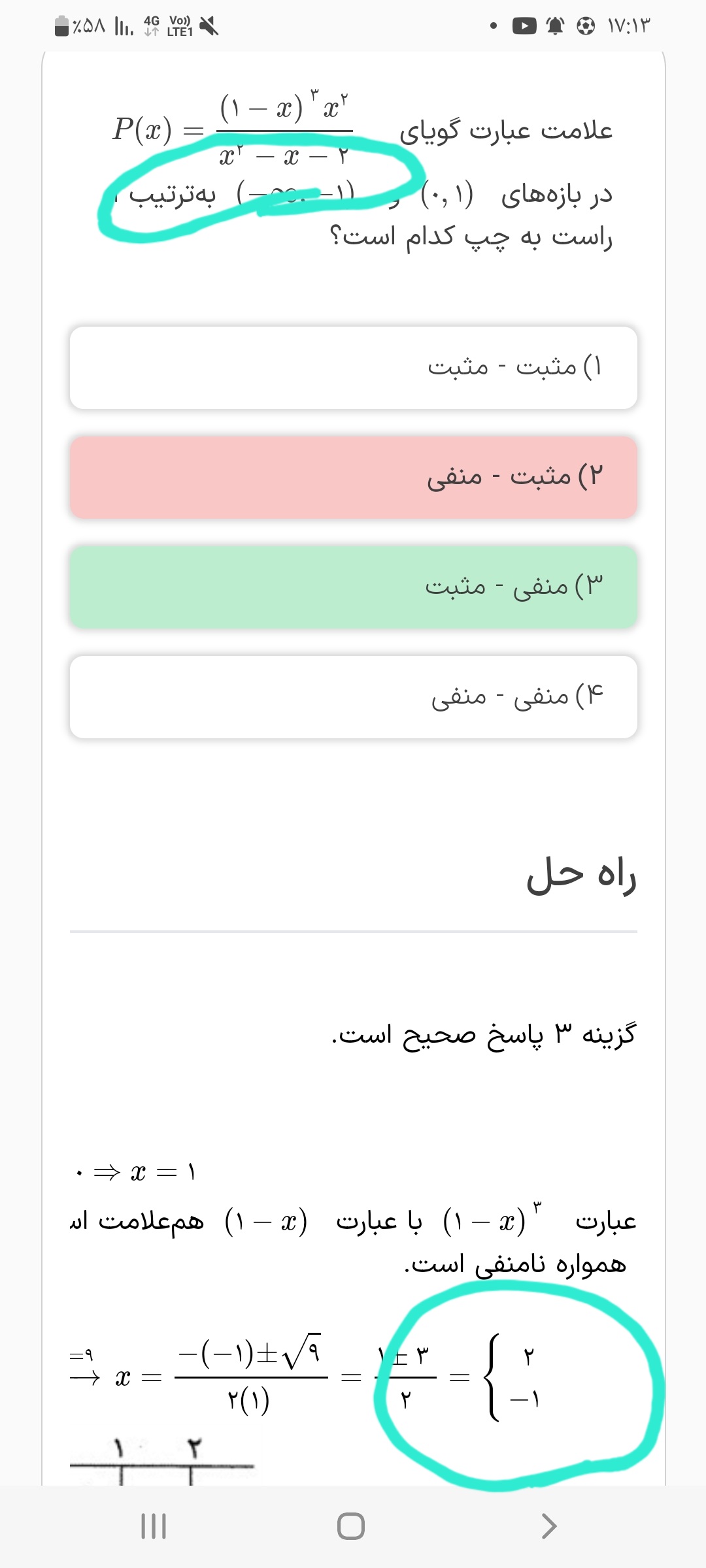 من بدون حذف 4- تعیین علامت کردم و تعیین علامتم متفاوت ولی جوابم یکسان شد