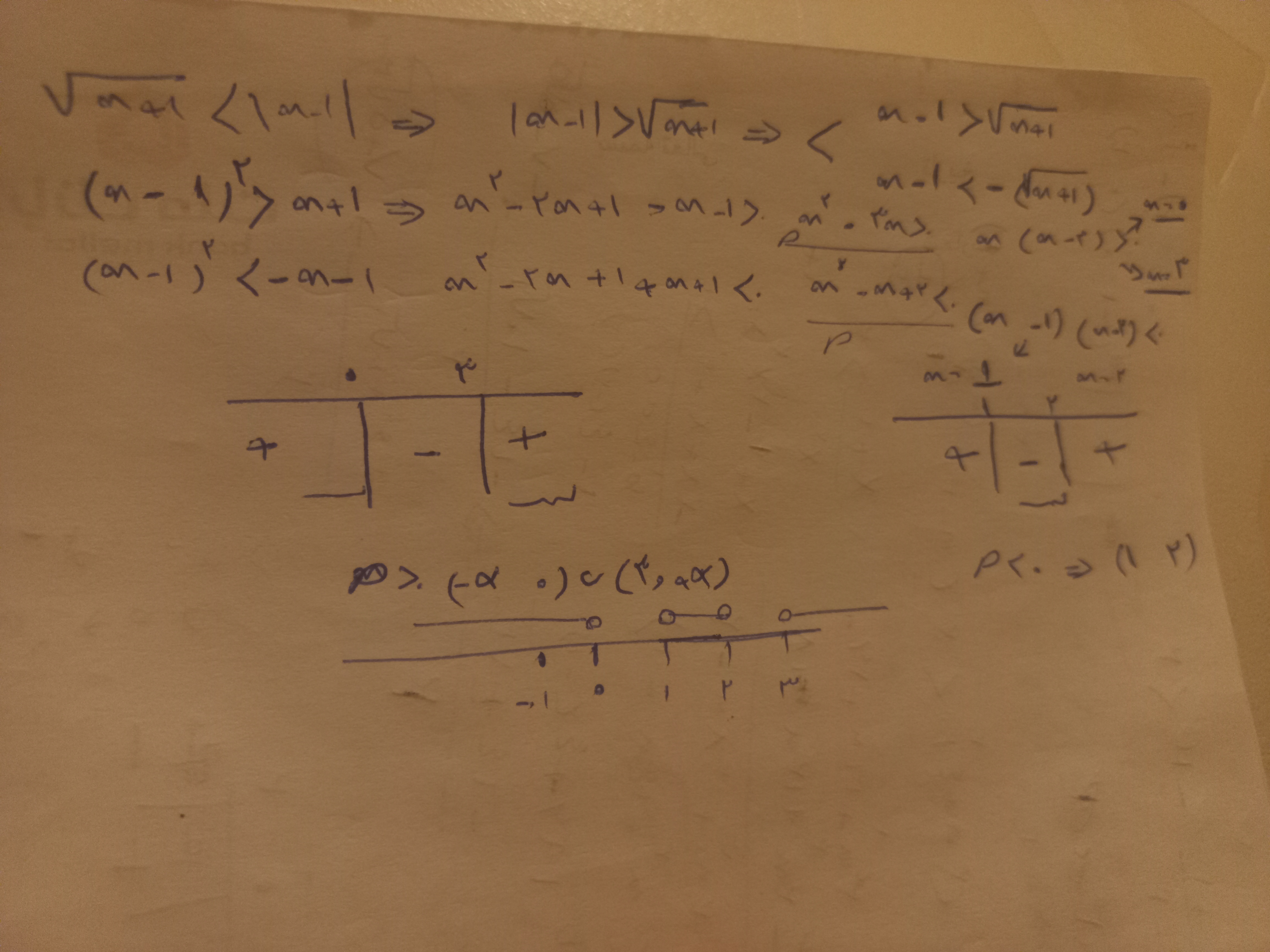 سلام و درود میتونیم دو طرف نامعادله رو به توان ۲ برسونیم در یک سمت خواهیم داشت ایکس به علاوه یک و در طرف دیگر ایکس منهای یک به توان ۲ بعدش باید همه رو ببری یک سمت و اتحاد رو باز کنی و تعیین علامت کنی با توجه به نامعادله