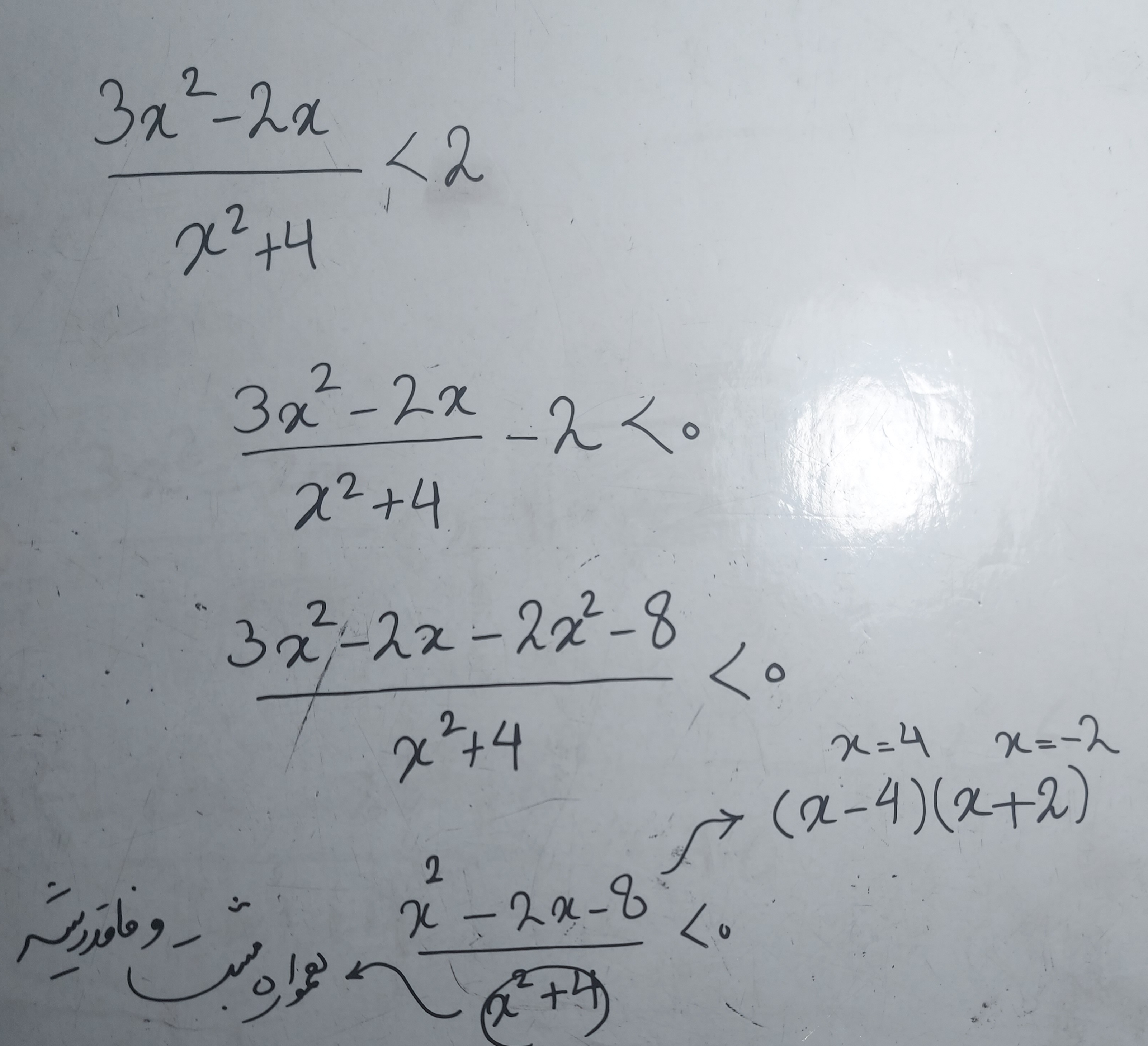 @مهشید خوبان خب منم همینو گفتم منفی دو و چهار،ریشه های معادله هستن و در فاصله بین این دو ریشه،مقدار منفی میشه اوکی؟