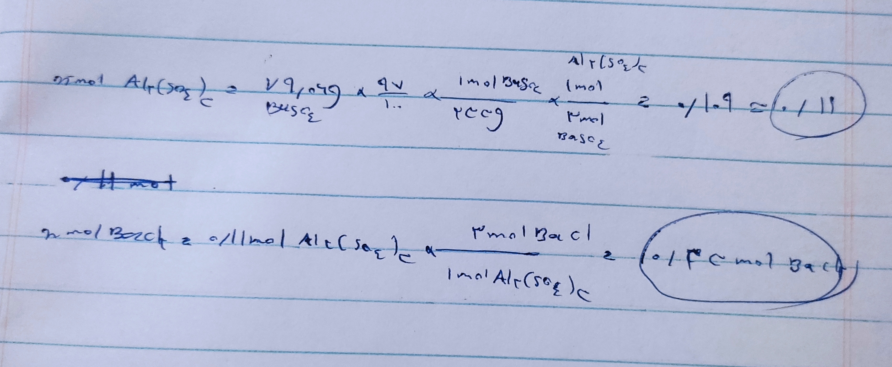 چون ۳ مول از باریم سولفات داریم ضریبی ک بعد موازنه بدست اومد رو ضرب جرم مولی میکنیم... توی دهم این نسبت هارو گفتن استاد ک g بودنی در چی ها ضرب میکنیم مخرجو