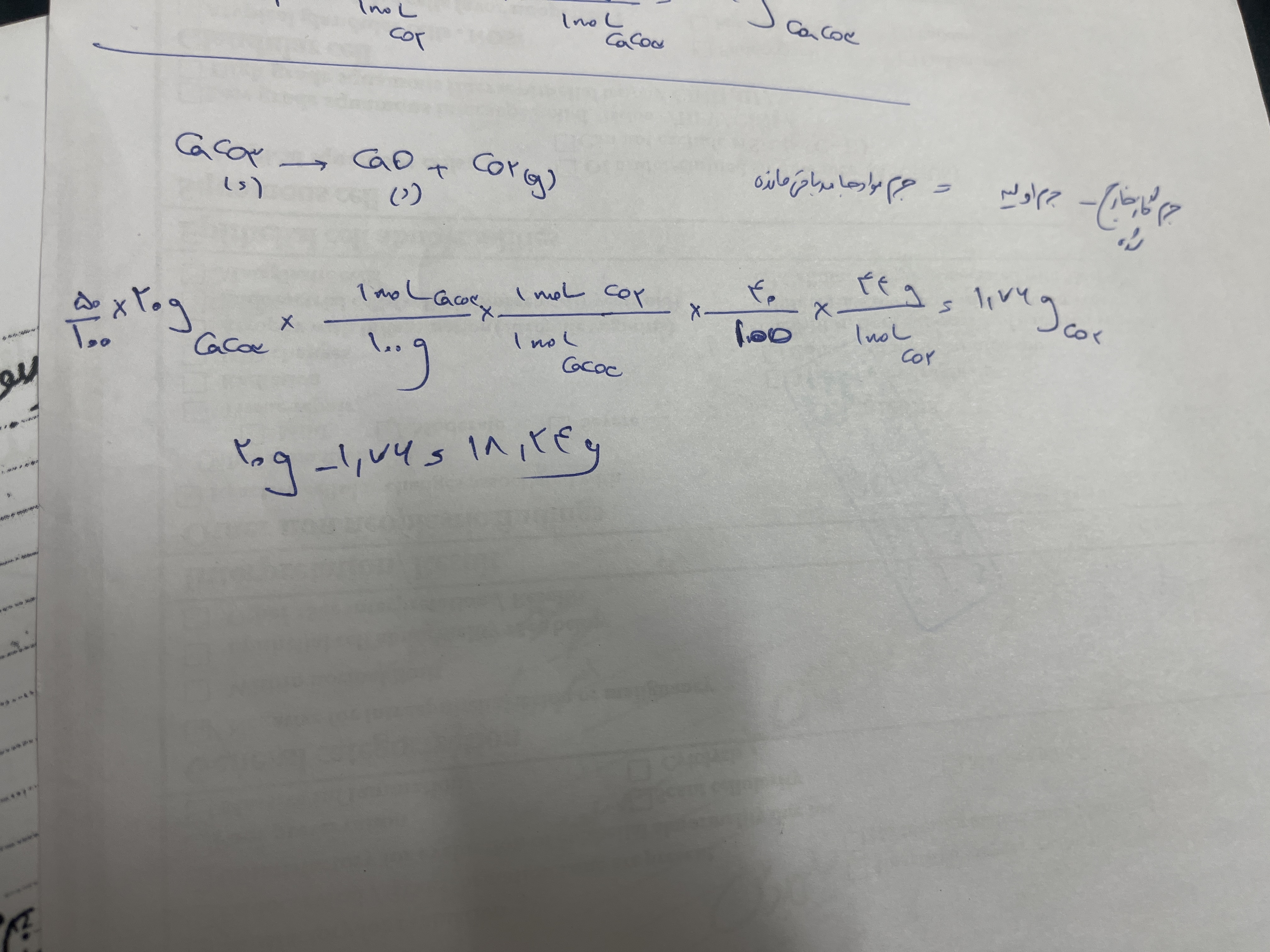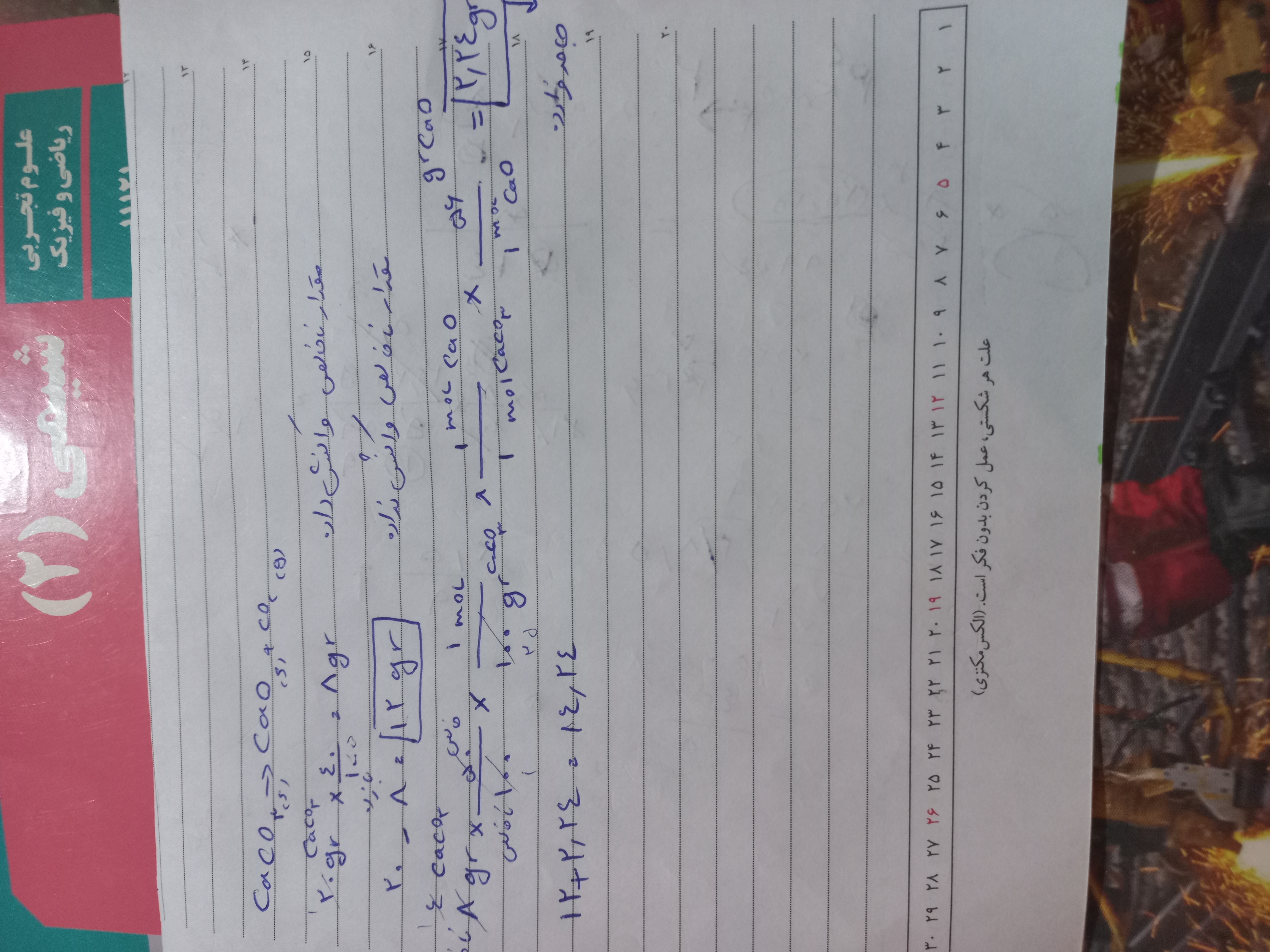 چرا مستقیم کسر واسه گرم کلسیم اکسید ننوشتیم؟ چرا گاز رو نوشتیم و از ۲۰ کم کردیم