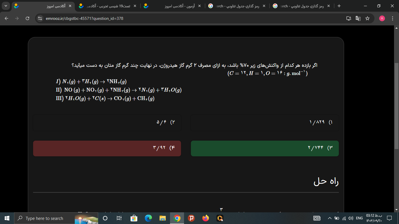 سلام چرا برای ۲ ( قسمت اخر سوال ) ضریب نیتروژن دی اکسید که ۲ بود رو برا مخرج نگذاشت ؟؟؟