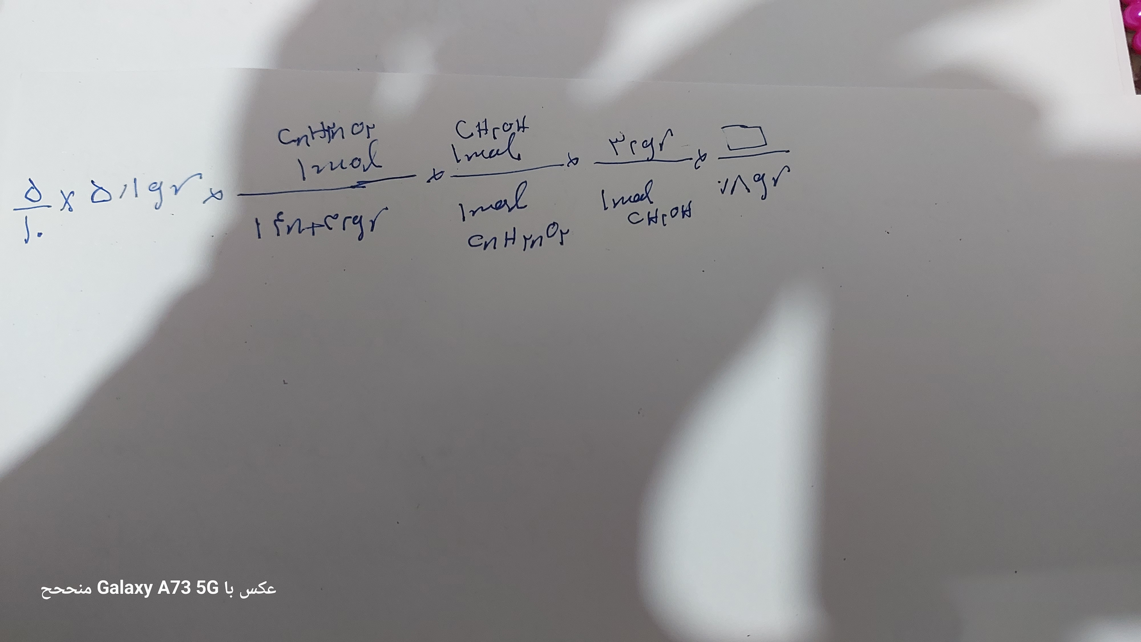 سلام فقط قسمت اخر کسر اخر باید خط بخوره و بجاش مساوی ۰.۸ گرم متانول نوشته بشه