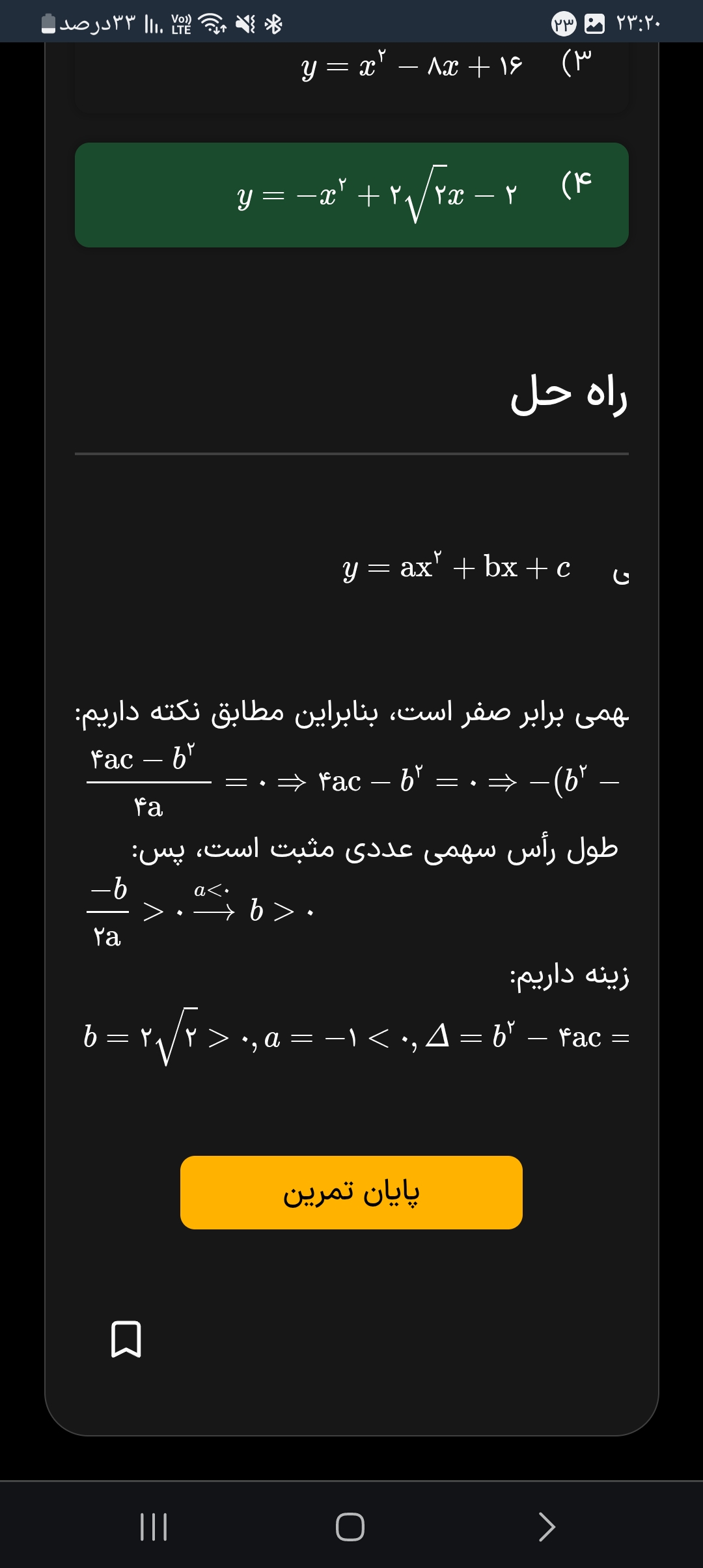 سلام خسته نباشید ببخشید توی این سوال متوجه تعیین علامت a,cشدم اما b چطوری شد مثبت دو رادیکال دو؟؟