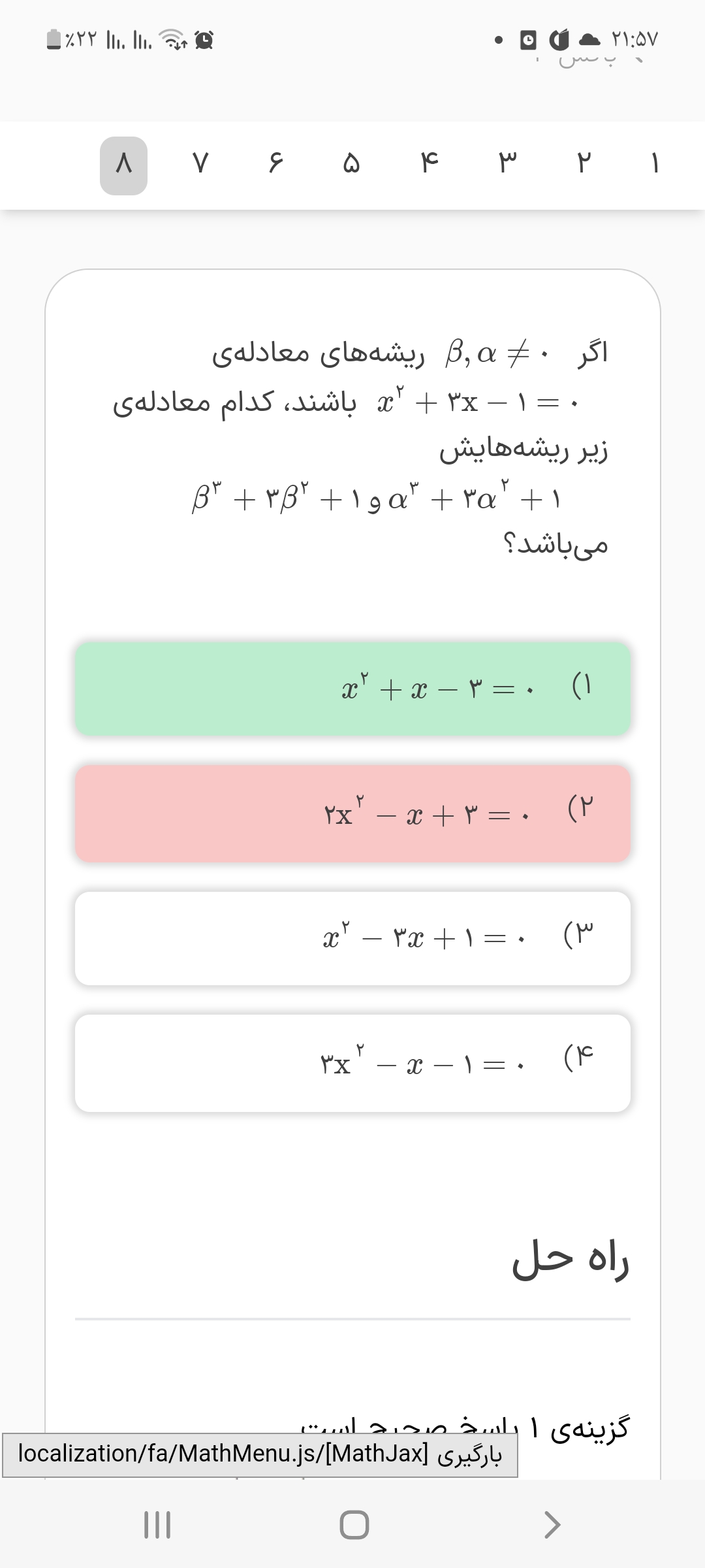 سلام لطفا تست 8یادبگیریم فصل3پایه دهم ویازدهم جواب چه جوری بدست میاد