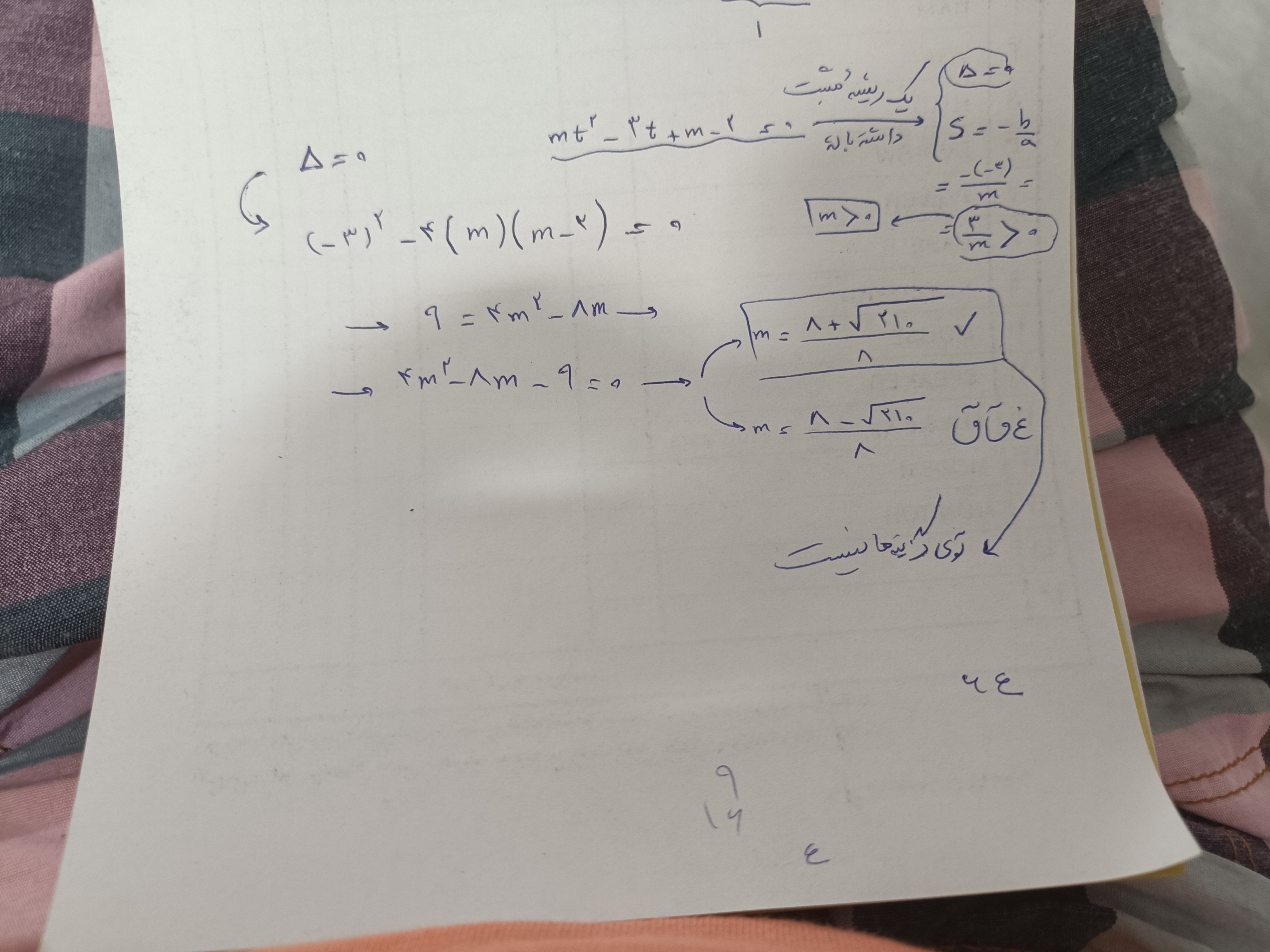 سلام. عبارت درجه دو برای اینکه یک ریشه مثبت و یک ریشه منفی داشته باشه باید ضرب ریشه هاش منفی باشه. این یک نکته هست.