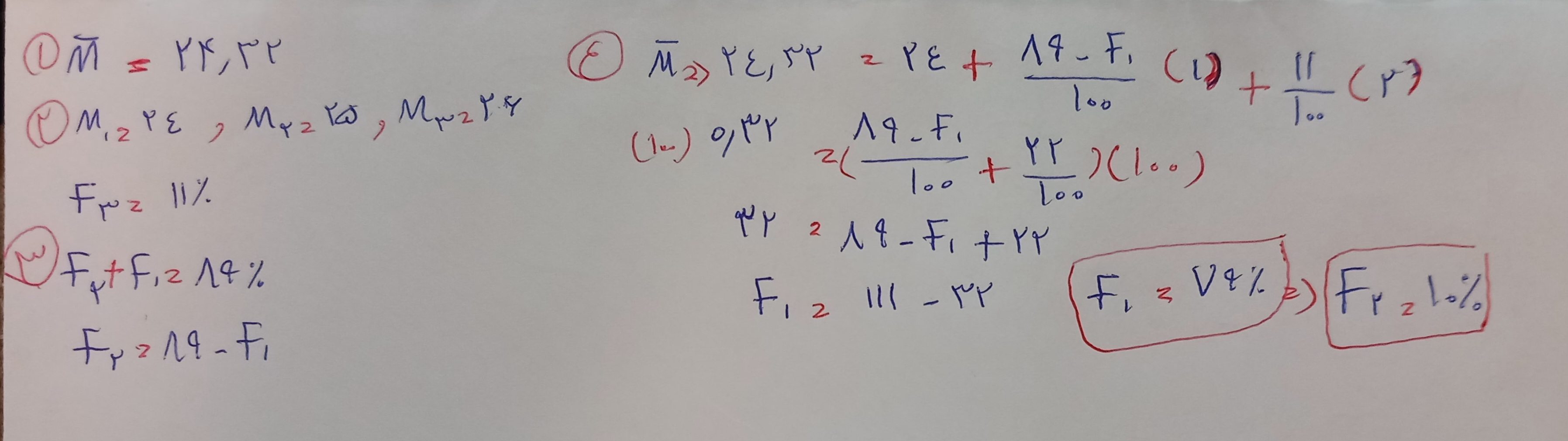 @دنیا کرمی خب بین از رابطه میری f3 به دست میاد بعدش ما میدونیم که جمع درصد فراوانی ها باید بشه 100 100رو هم کم میکنیم از جمع F2 با F3 که جواب میشه 79