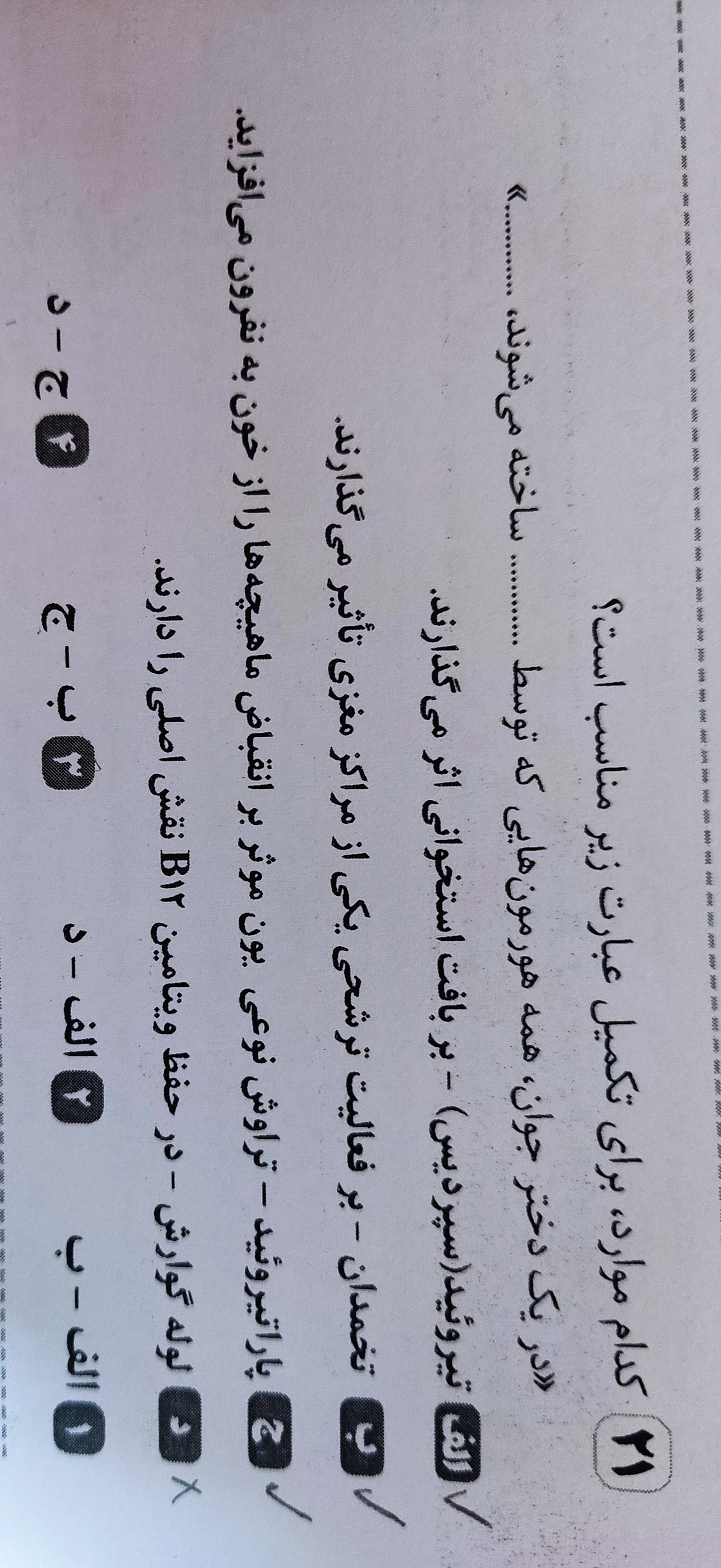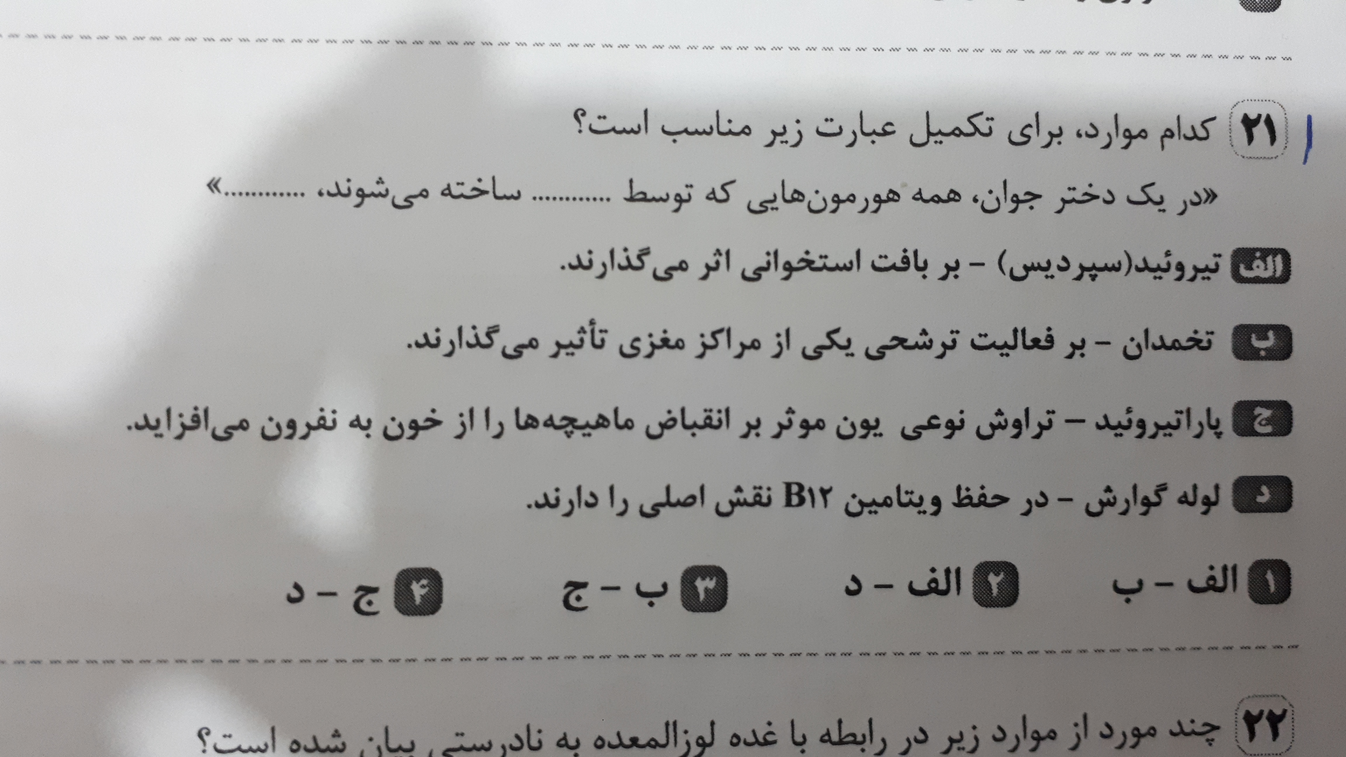 ببخشید این تست در جزه فرق داره بجای مورد ج در جزه یک چیز دیگه نوشته شده