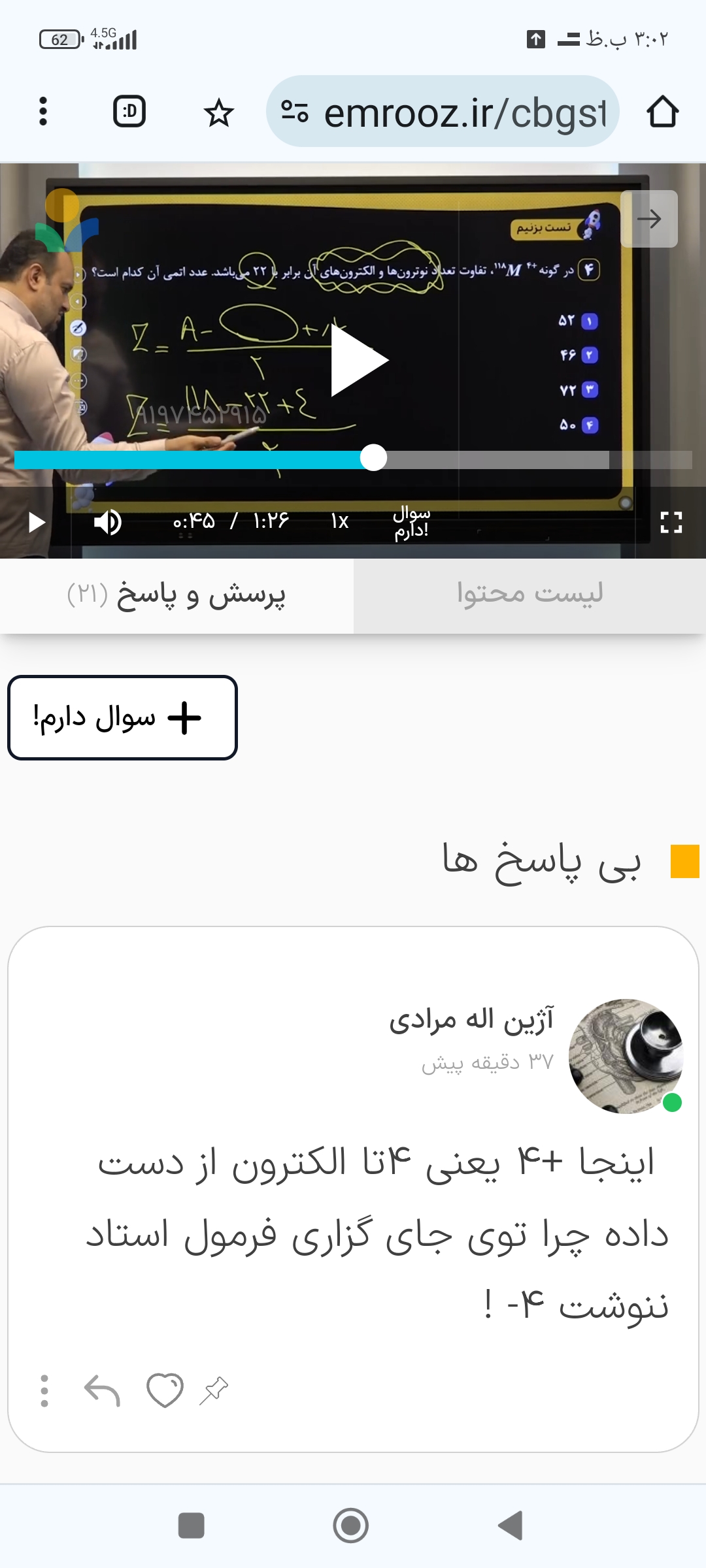 سلام استاد ببخشید صورت سوال نگفته که مال Mخنثی رو میخواد چون اگه میگفت ما همون ۵۰ رو در نظر میگرفتیم اما هیچی نگفته به نظرم باید همون M ۴بارمثبت رو در نظر بگیریم که میشه ۴۶ چطوری جواب شده ۵۰؟