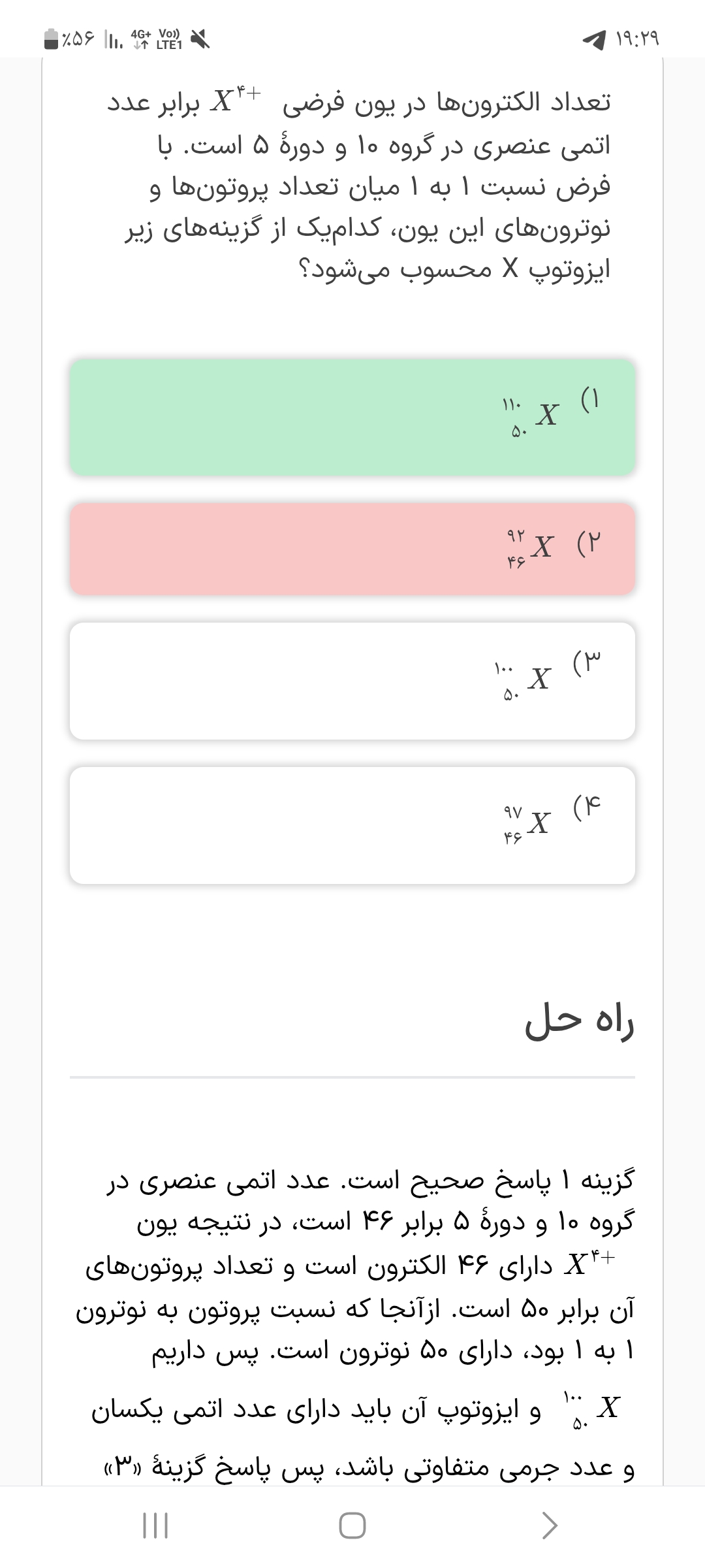 گزینه دوم سه تاش درسته خواص شیمیایی یکسان تعداد ذرات باردار شمار گروه
