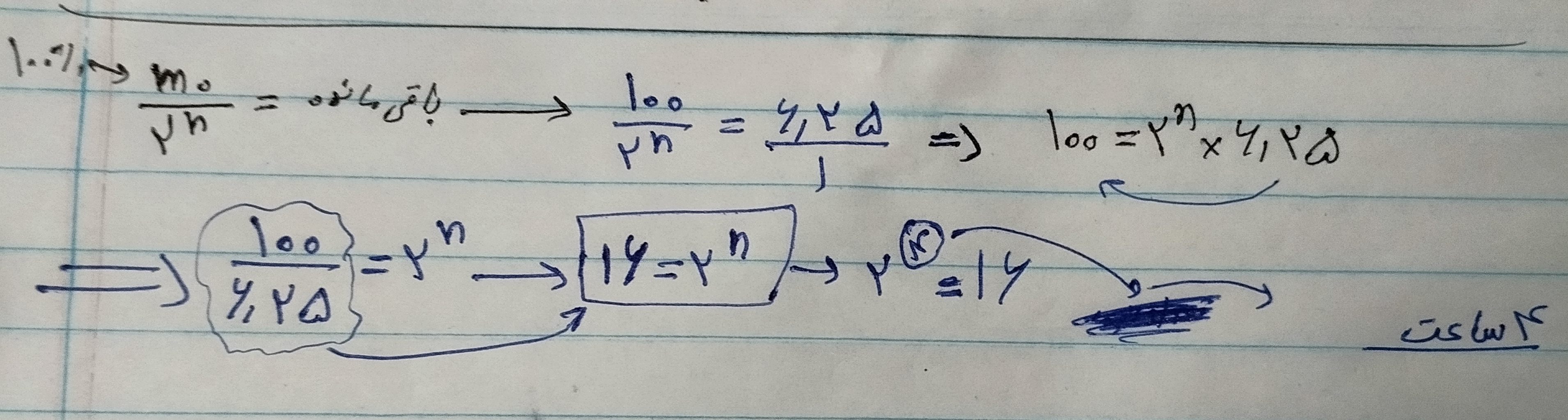در مثال ۲ ما مقدار اولیه که ۱۰۰ بگیریم ۶.۲۵ باقی مانده طبق فرمول ما nرو نداریم وبر اساس فرمول باقی مانده چطور ما ۴ رو بدست بباریم ؟؟؟
