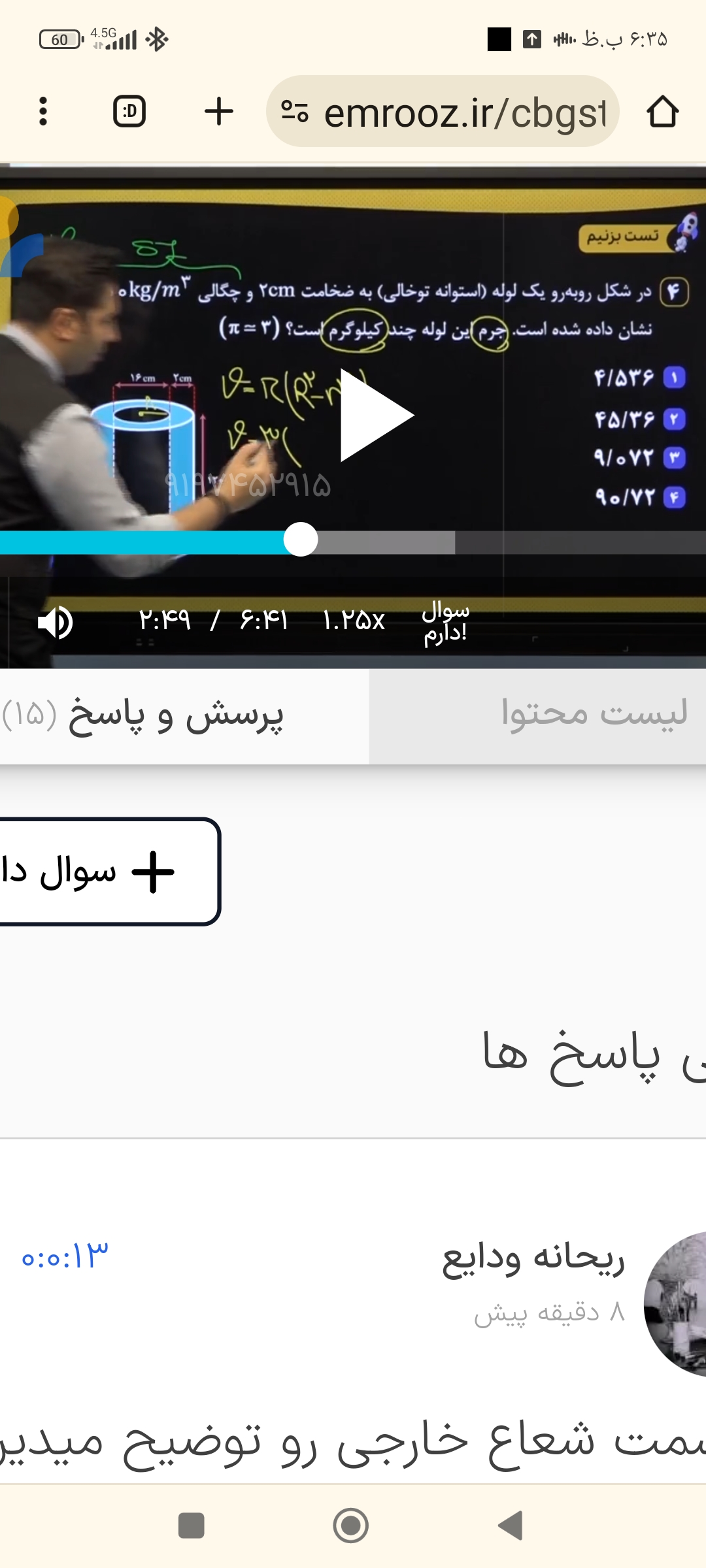 سلام توی بدست اوردن حجم استوانه نمیشه شعاع بزرگ رو منهای شعاع کوچیکه کنیم بعد به توان ۲ برسونیم ؟؟ جواب نادرست میشه؟؟