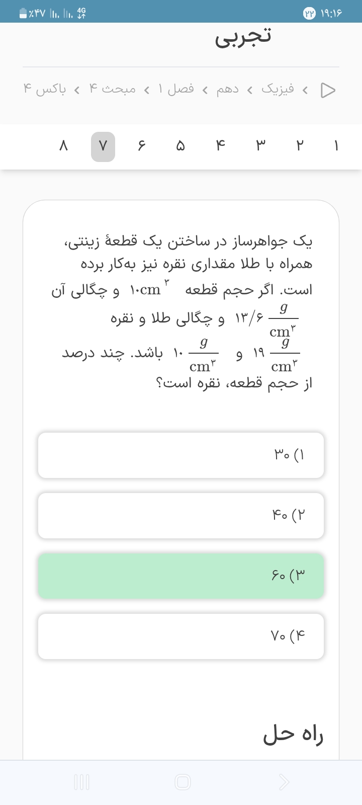 سلام ببخشید پس چ زمانی میگفتیم اون جسمی ک حجم بیشتری داره چگالی بیشتری دارع