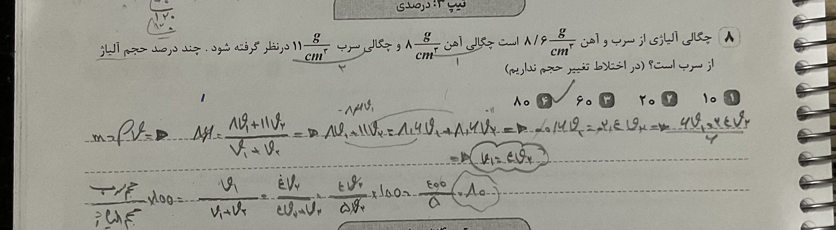 چرا اینجا اول حجم آلیاژ برای درصد گیری توی صورتت ننوشت مگ خواسته سوال برای آخرین قسمت از ما درصد آلیاژ بر سربو نخواسته؟