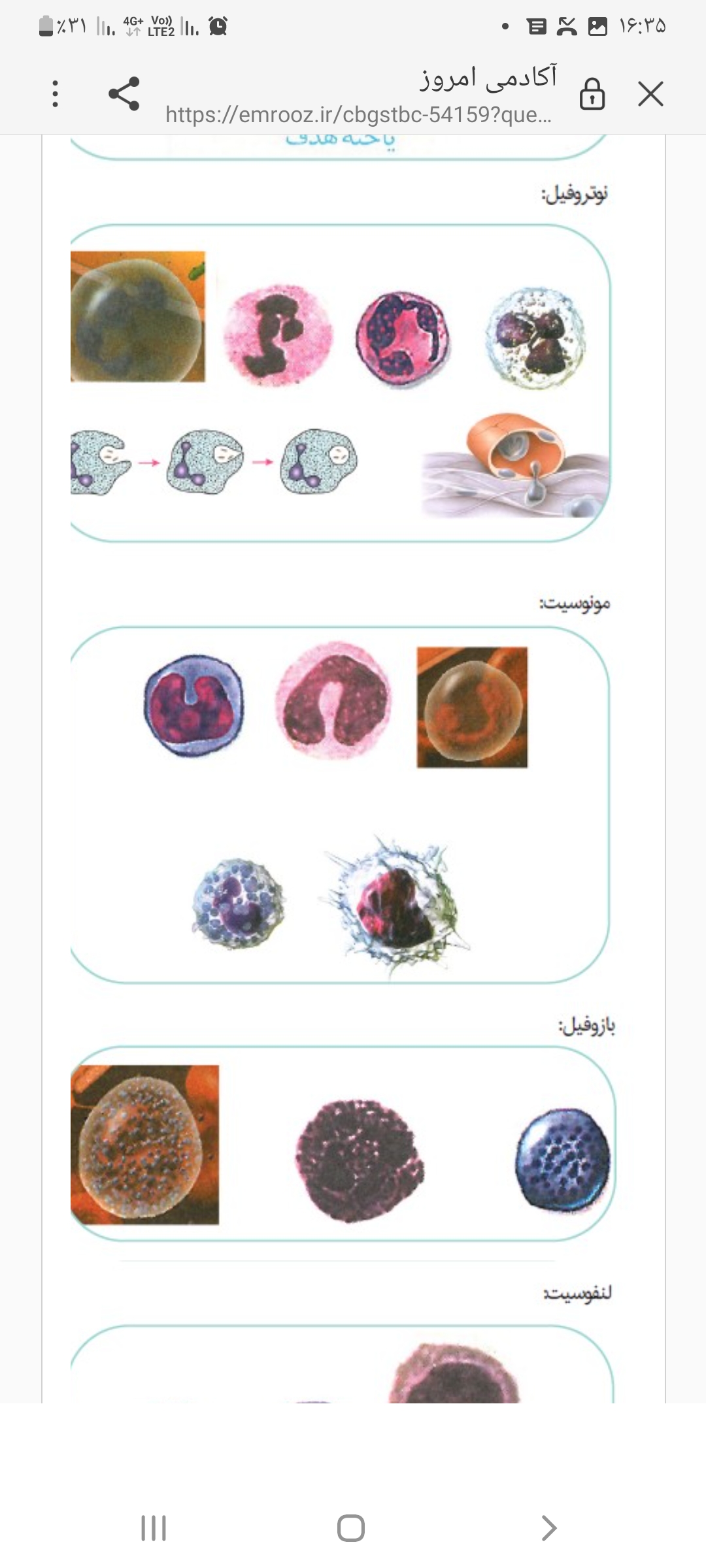 سلام ببخشید در رابطه با گزینه ۳ که گفته از نظر توانایی تولید ترکیبات موثر بر قطر رگ های خونی درباره بازوفیل هم غلطه؟چون فقط به مویرگ اثر میذاره دیگه