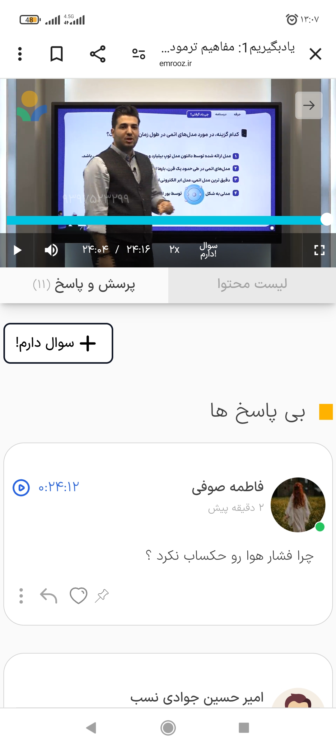 زیر این ویدیو کامنت گذاشتید ظاهراً سوالتون با محتوای ویدیو در این تایم مرتبط نیست ممنون میشم عکس سوال رو برام بفرستید ریپلای نباشه 🌷