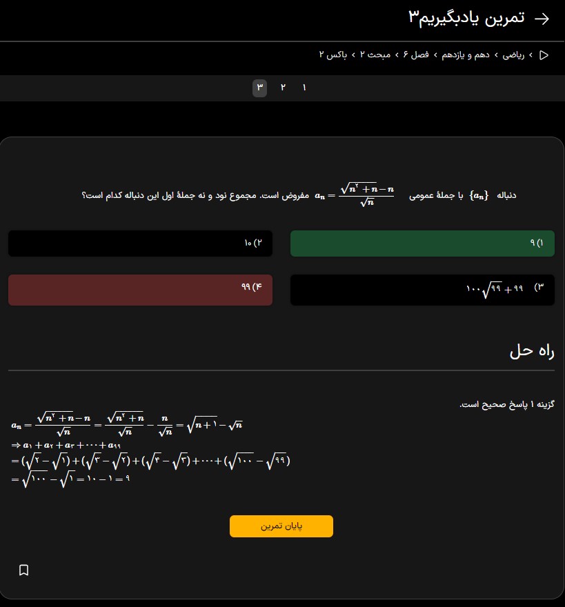 تست ۳ تمرین دنباله رو میشه توضیح بدید