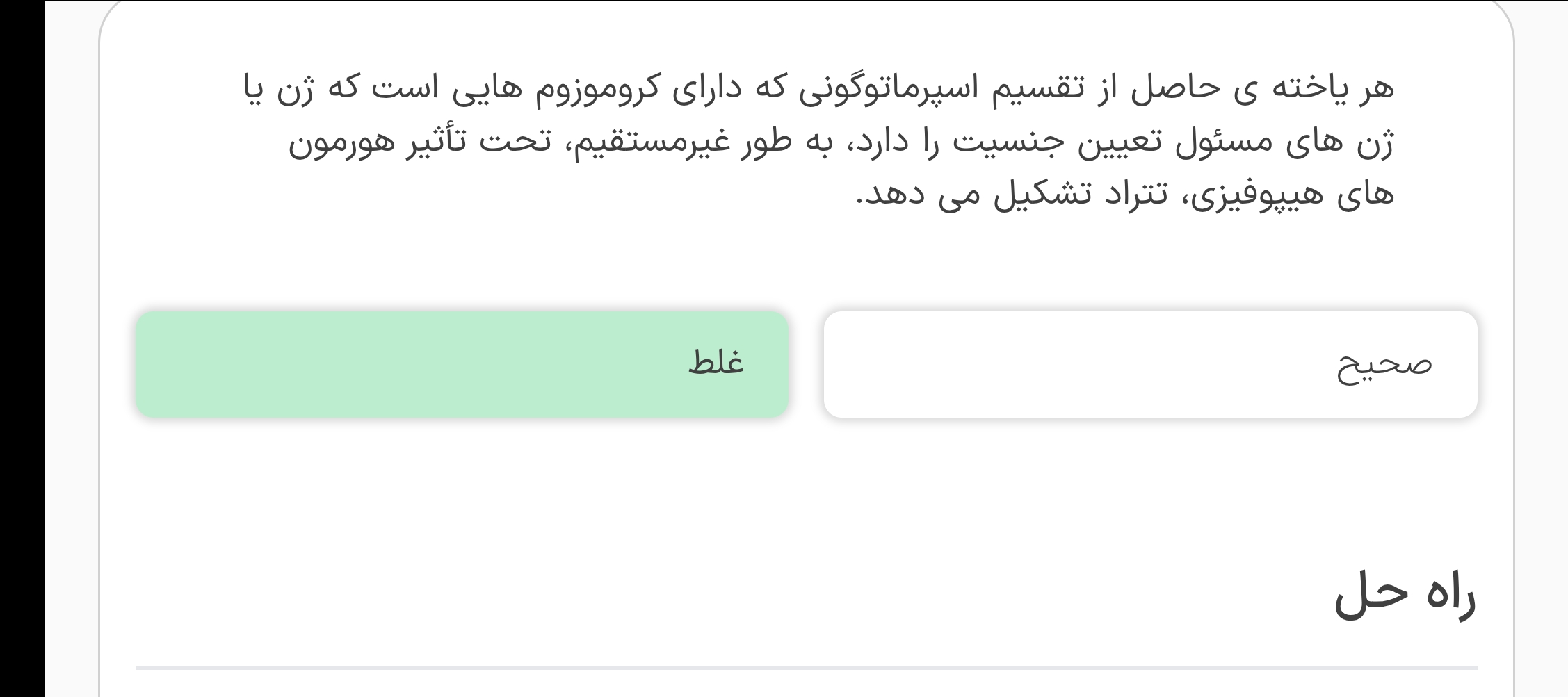 این سوالمم لطفا جواب بدید👇 اینکه میگه یاخته های حاصل از تقسیم اسپرماتوگونی مگه نمیشه یه اسپرماتوسیت اولیه و یه اسپرماتوگونی ذخیره؟بعد گفته اونی که ژن مسئول تایین جنسیت داره،یعنی اونی که یاخته جنسی هست که بر اساس توضیحات استاد که گفتن اسپرماتوگونی رو یاخته پیکری در نظر بگیریم پس فقط میشه اسپرماتوسیت اولیه،اما تو پاسخنامه اسپرماتوگونی رو هم به عنوان یاخته دارای ژن تعیین جنسیت (یعنی یاخته جنسی)در نظر گرفته بود،چرا؟