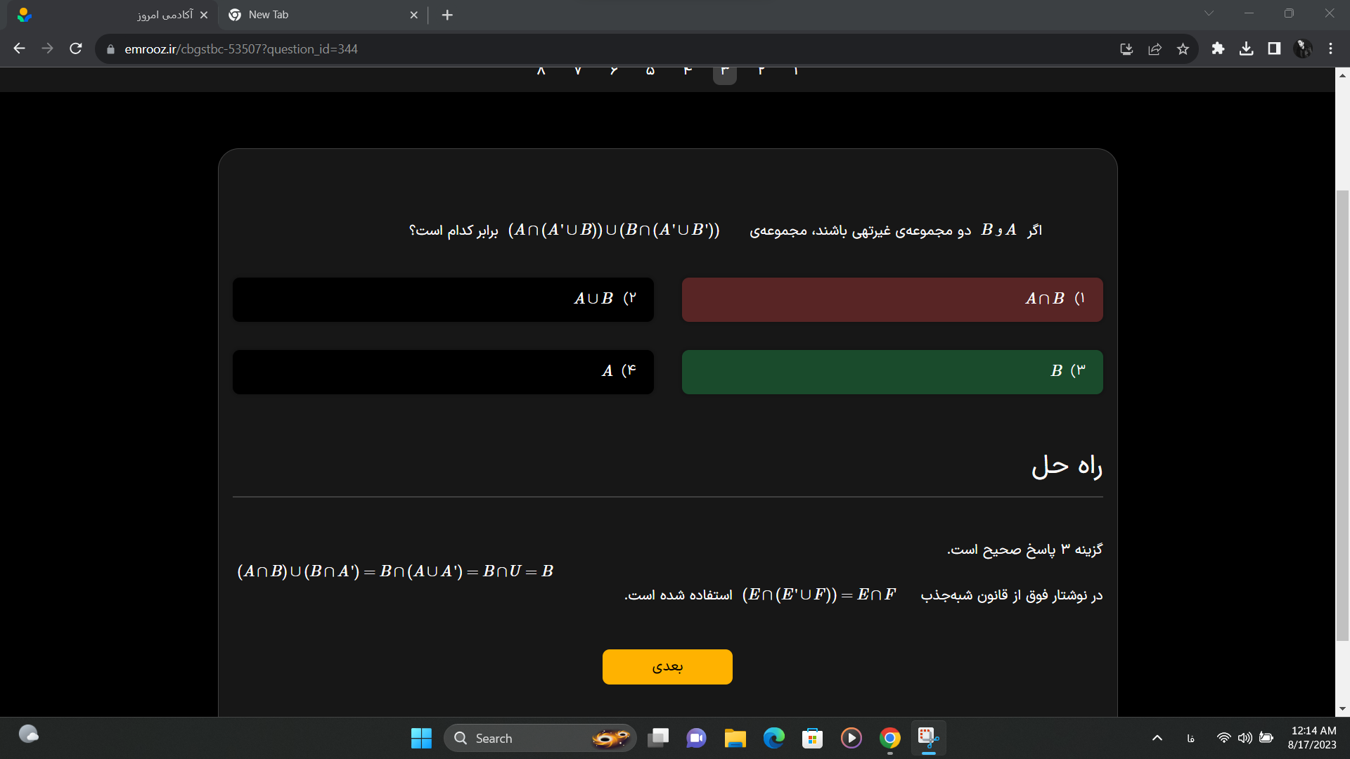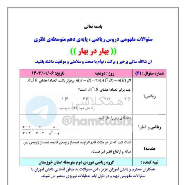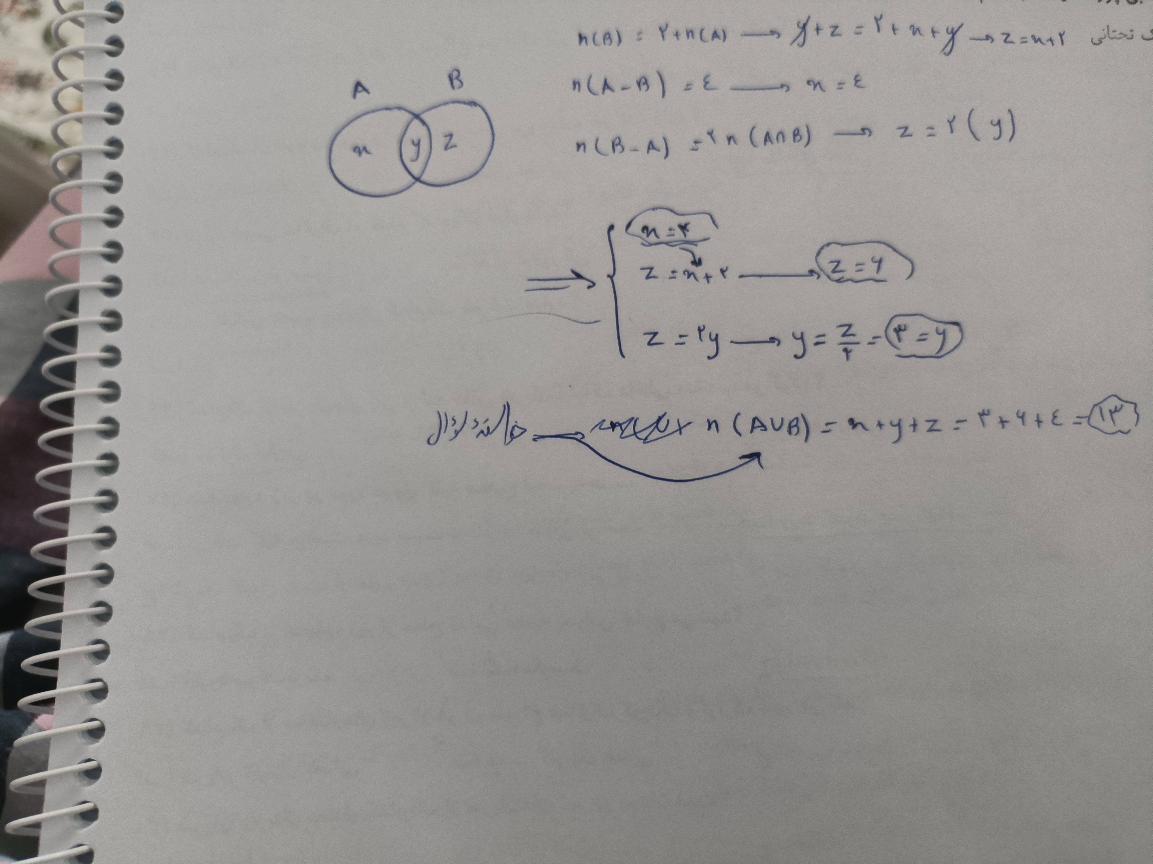 اقا این سوال رو کسی میتونه با شکل و روشی که استاد توضیح دادن حل کنید و توضیح بدین ؟ ( با نمودار ون و بدون فرمول ) و لطفا اگه کسی فرمول های این درس رو به صورت کامل داره رو برام بفرسته به صورت عکس یا نوشته ( فرمول های مربوط به این سوالات برای امتحان نهایی میخوام ممنون )