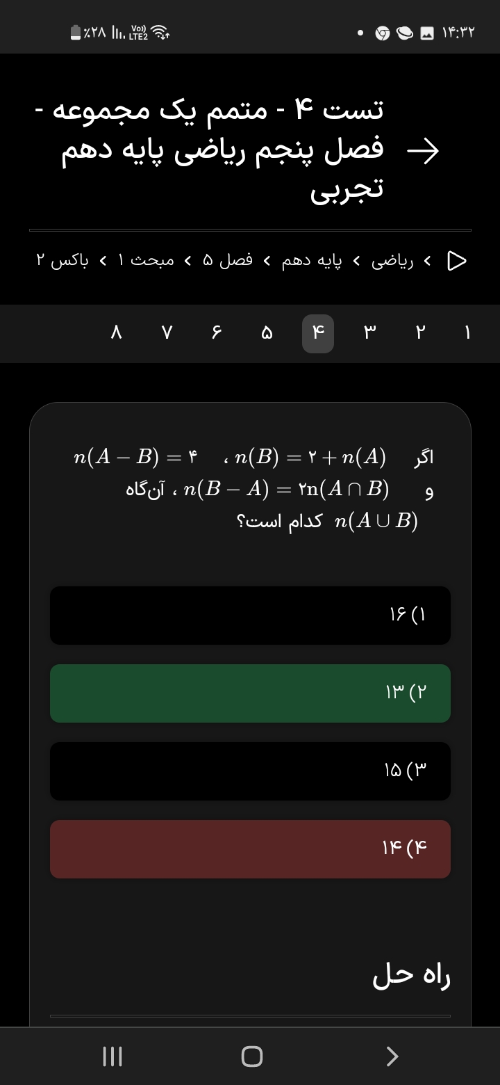 ببخشید اطلاعات داخل پرانتز در حل مسئله رو نادیده گرفتید. اینکه گفته کشاورزان فقط چای و برنج برداشت می کنند باید نتیجه بگیریم که تعداد اونایی که نه چای می کارند و نه برنج صفر میشه.