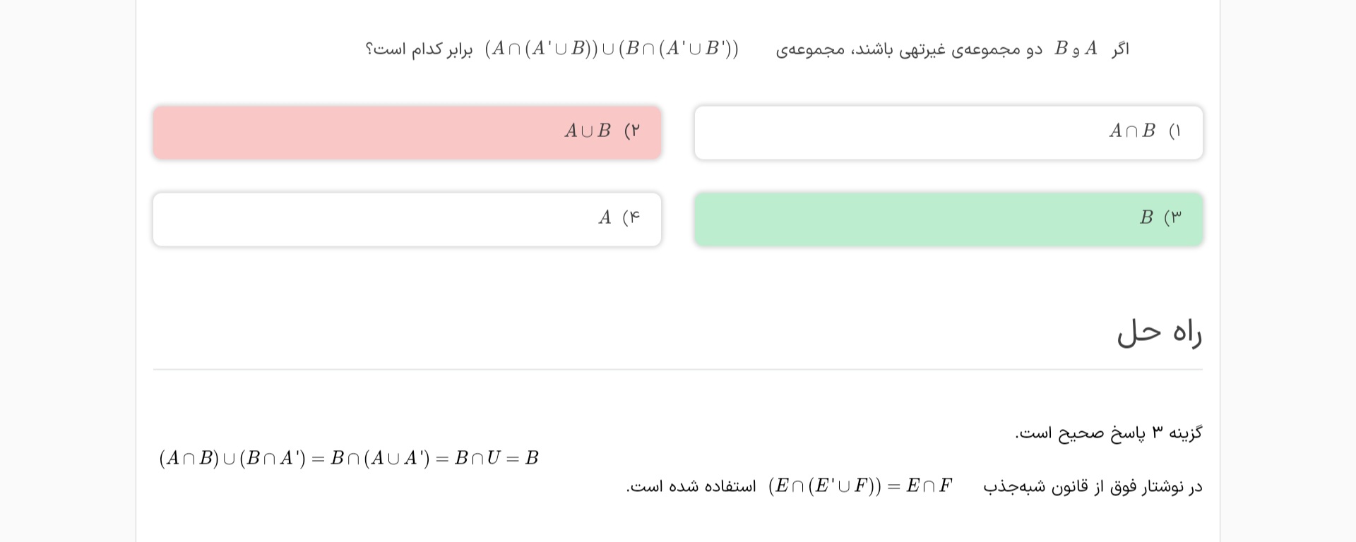 یعن براي سوالات تستی و کنکور هم با روش شکل و جای گذاری عدد برای مجوعه های که نداریم پیش بریم؟ بعد این روش خیلی زمان بَر هست