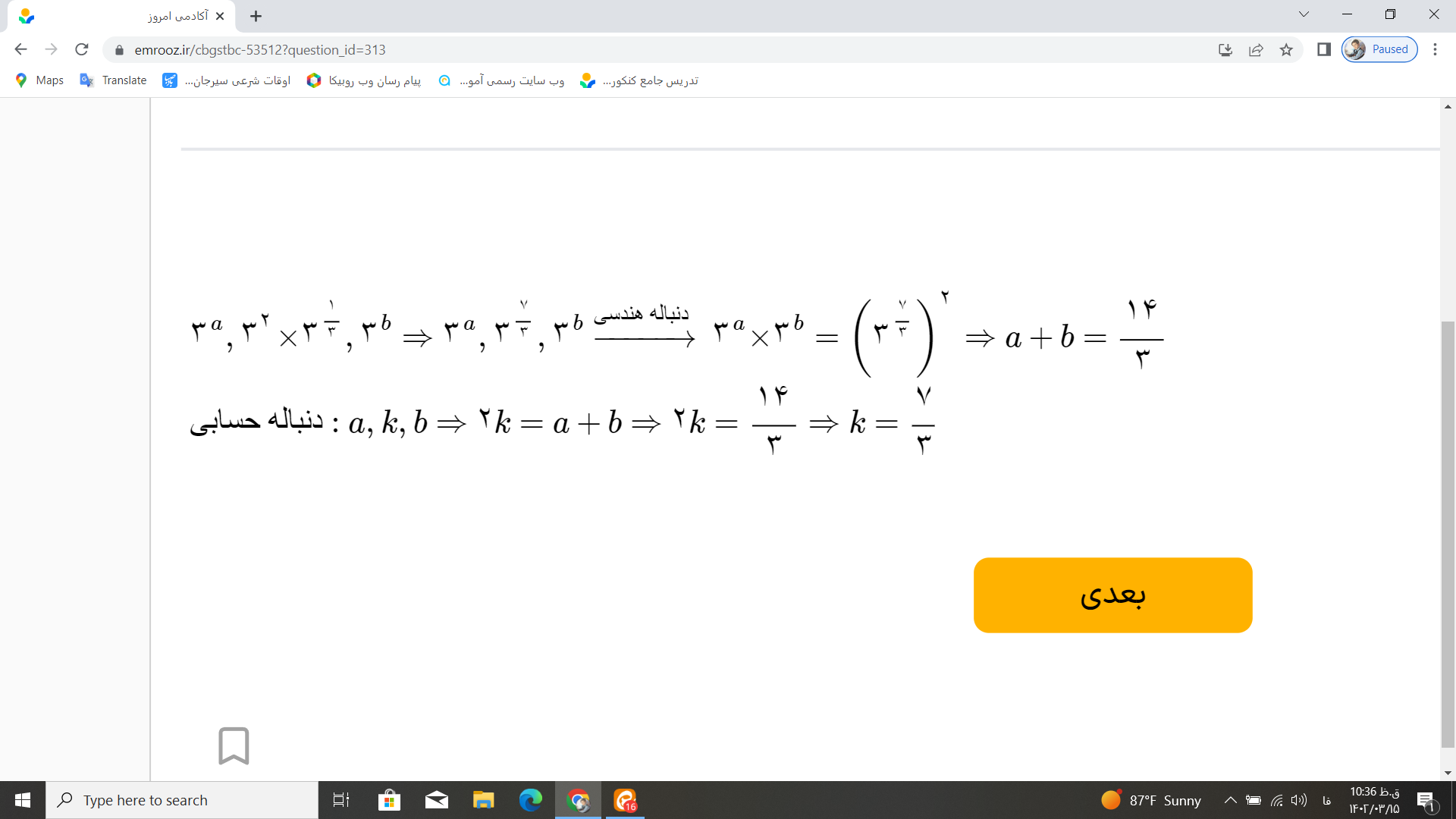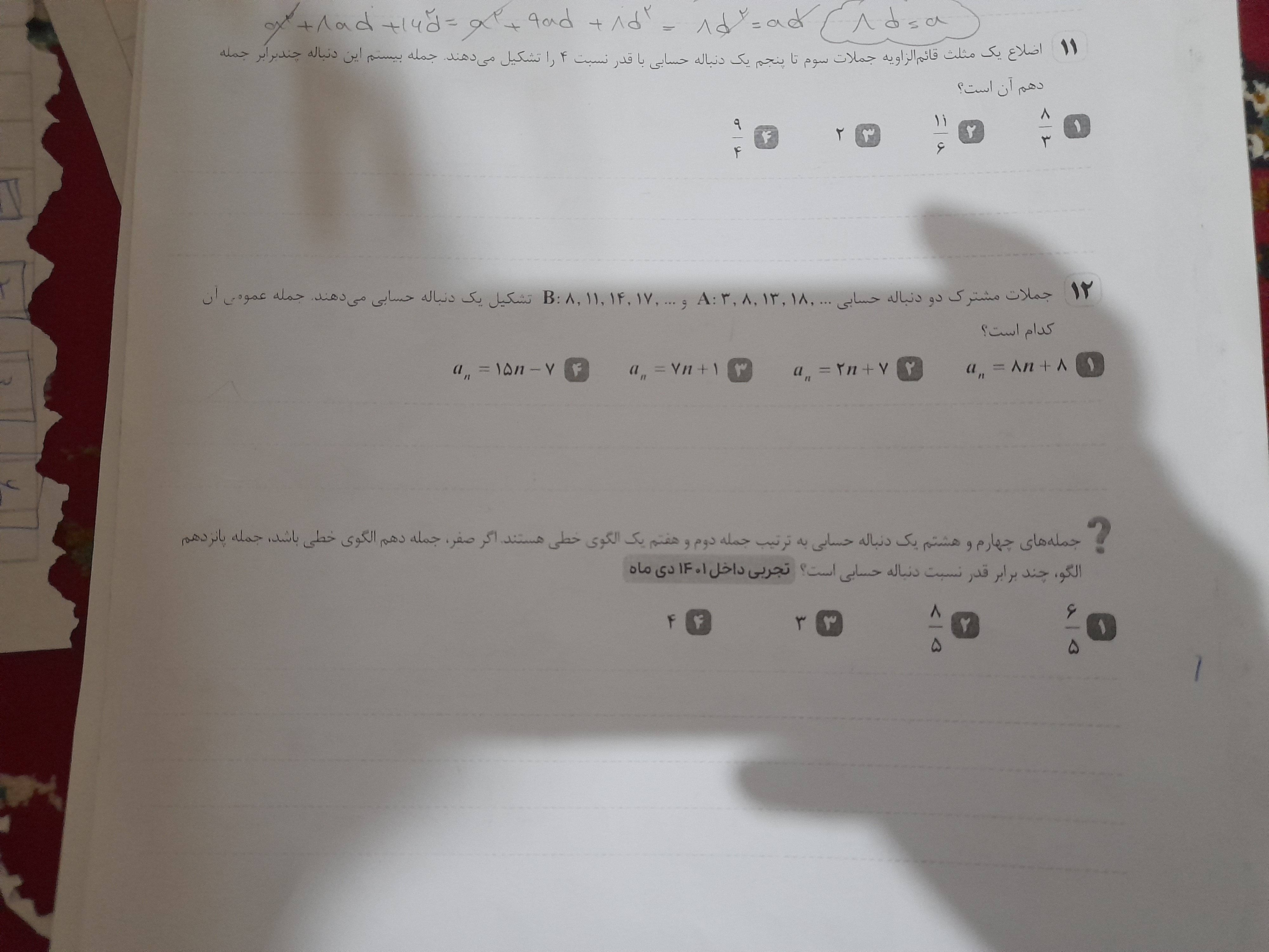 مگه نمیگفتیم تو دنباله هندسی جمله وسطی به توان دو بابره با ضرب جمله های قبل و بعدش ؟ چطور شد یهو توان دوش برابر با جمع قبل و بعدش شد ؟