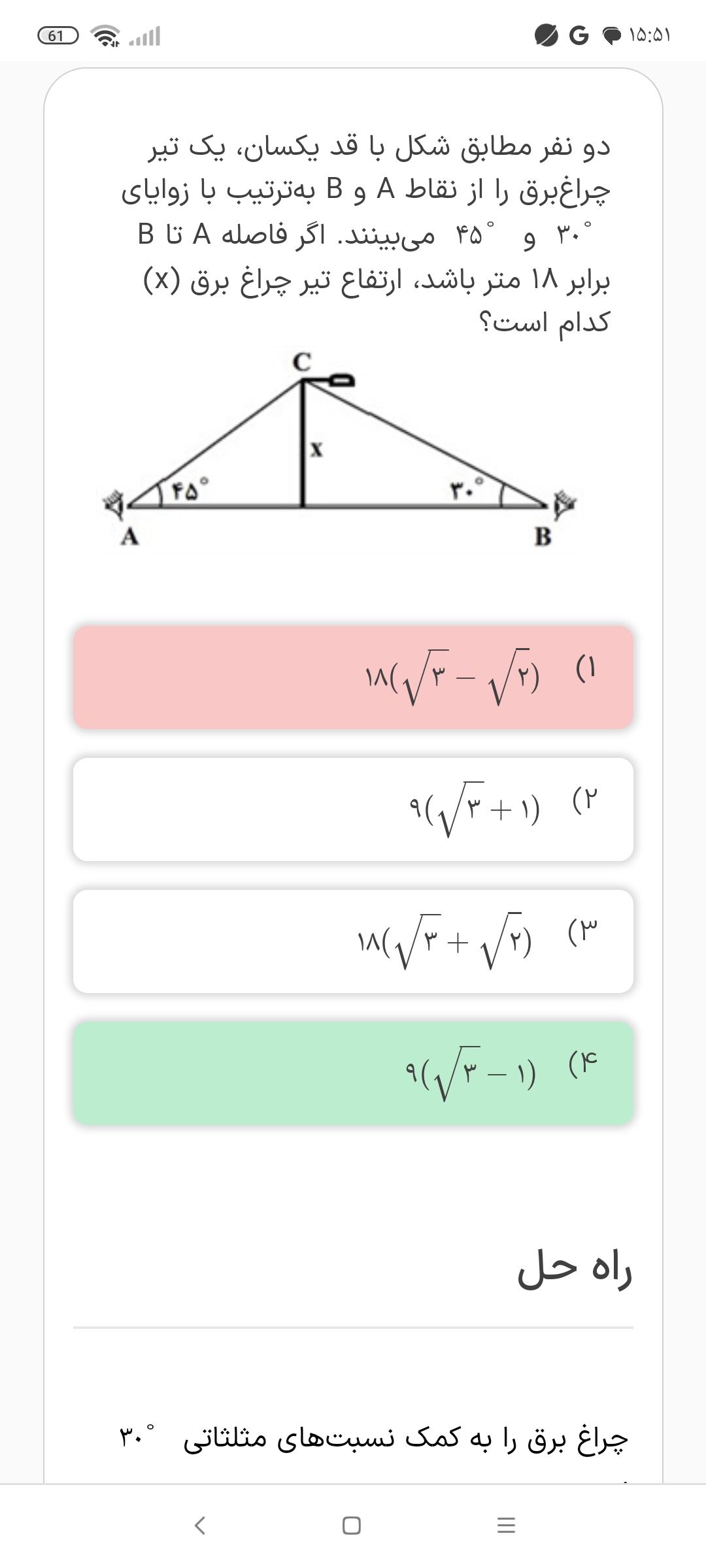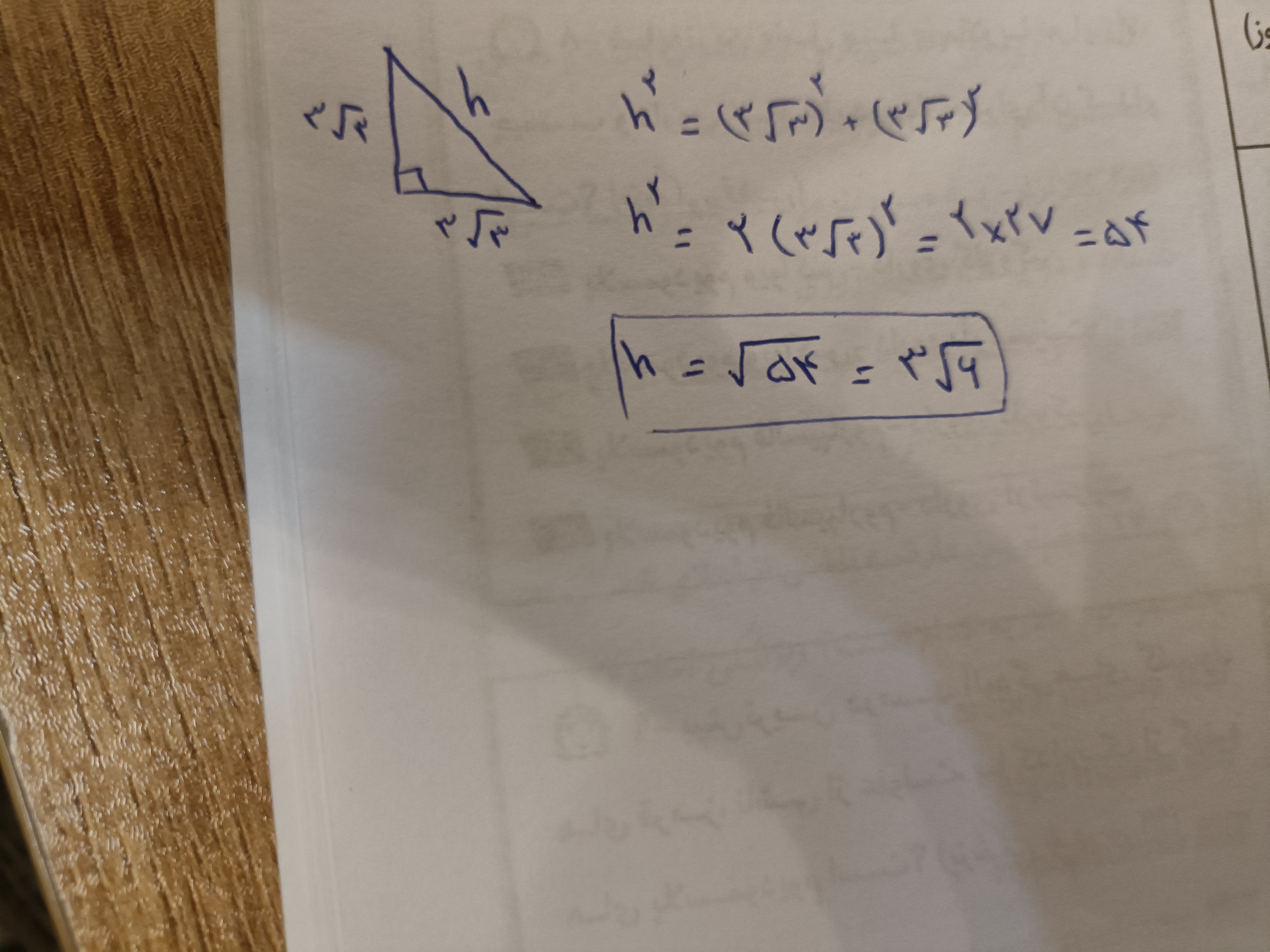 سلام وقت بخیر ، چرا نمیشه قسمت خواسته شده را وتر مثلث در نظر بگیریم و از طریق سینوس ۴۵ وتر را پیدا کنیم ؟ یکم گنگ هست برام که چرا از این راه رفتیم .