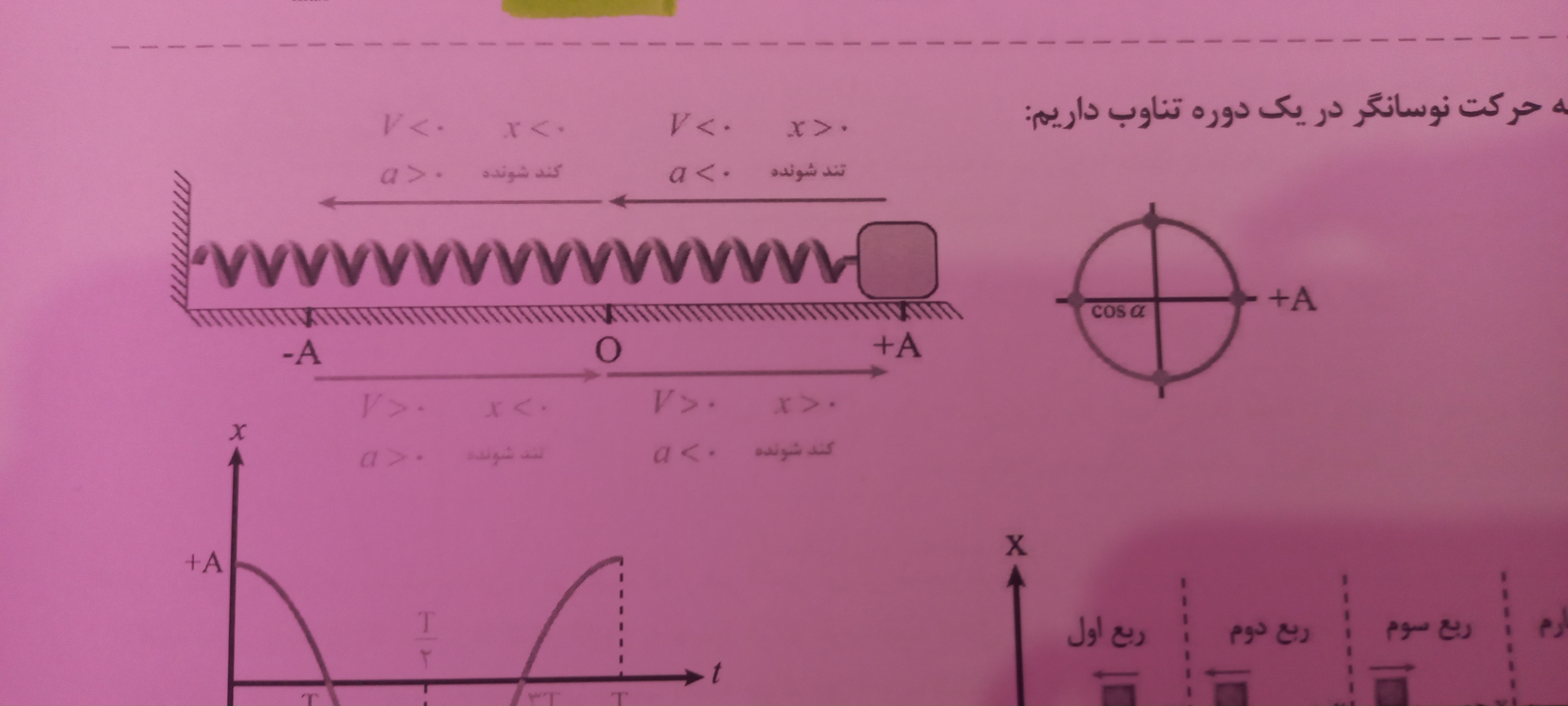 در حرکت فنر ما اخرش از نقطه مبدا نوسان شروع به حرکت میکنیم یا از نقاط بازگشت نوسانگر