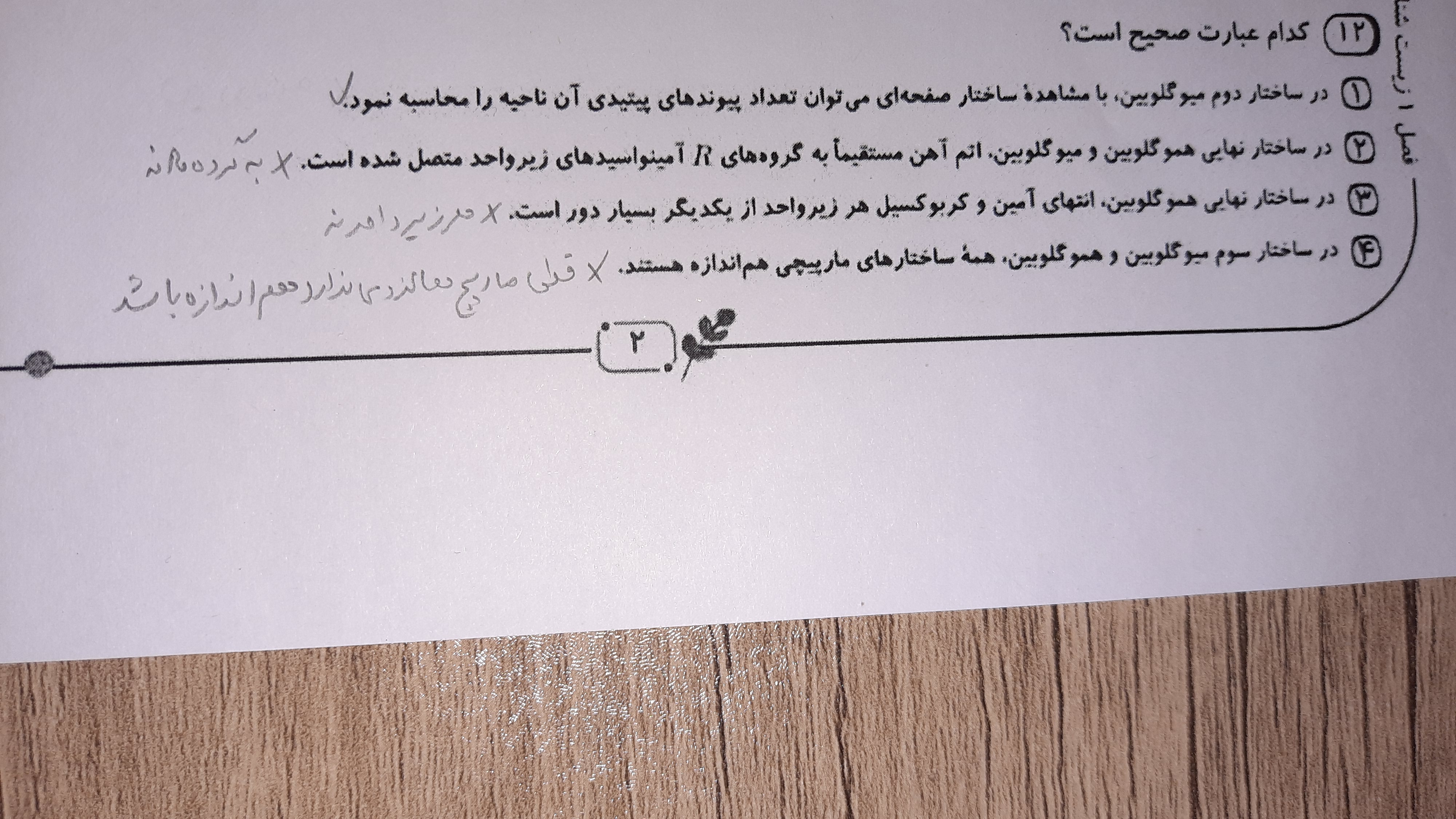 توی گزینه دوم نمیتونستیم چون برای میوگلوبین از لفظ زیر واحد استفاده کرده گزینه رو رد کنیم؟
