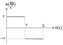 نمودار شتاب - زمان متحرکی در مسیر مستقیم مطابق شکل است. اگر سرعت متوسط متحرک در این مدت ۶ ۴ ms باشد، سرعت اولیهی ‌آن چند متر بر ثانیه است؟