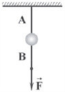 در شکل زیر، گلولهای بین دو نخ A و B بسته شده است. در آزمایشی بزرگی نیروی را به آرامی افزایش میدهیم تا یکی از نخها پاره شود. آزمایش را بار دیگر تکرار میکنیم به گونهای که بزرگی نیروی را ناگهان افزایش میدهیم تا دوباره یکی از نخها پاره شود. کدام گزینه درست است؟
