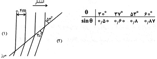 انتشار موج در محیط (۲) چند متر بر ثانیه است؟