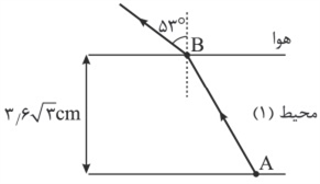 مطابق شکل مقابل، با ورود پرتوی نور از محیط شفاف (۱) به