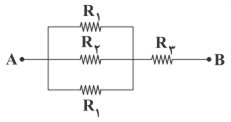 در شکل زیر، R۳ چقدر باشد تا مقاومت معادل بین BوA برابر R۲ شود؟
