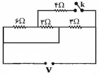 در مدار شکل مقابل، مقاومت معادل مدار بعد از بستن کلید k چگونه تغییر میکند؟