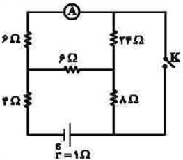 در مدار مقابل، با بستن کلید، عددی که آمپرسنج آرمانی نشان میدهد، چند برابر میشود؟