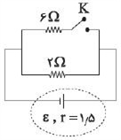 در مدار شکل زیر با بستن کلید K، توان خروجی باتری چند برابر میشود؟