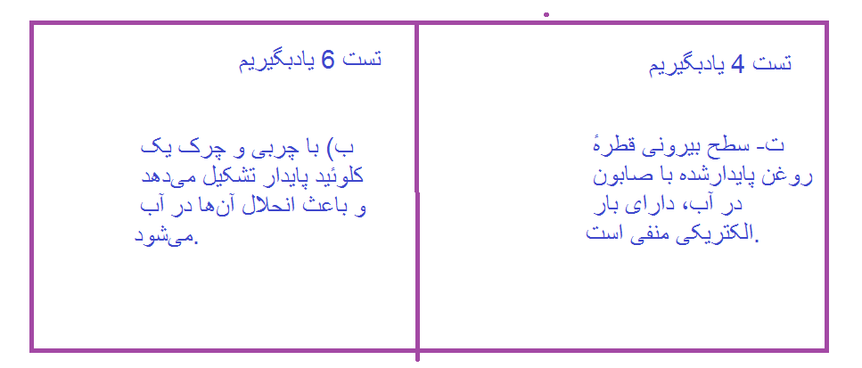 بله چربیها مخلوطی از استر بلند زنجیر و اسیدهای چرب هستند. که میشه a و b که با اضافه کردن صابون به مخلوط چربی و آب یک محلول پایدار ایجاد میشه که بهش کلوئید میگن