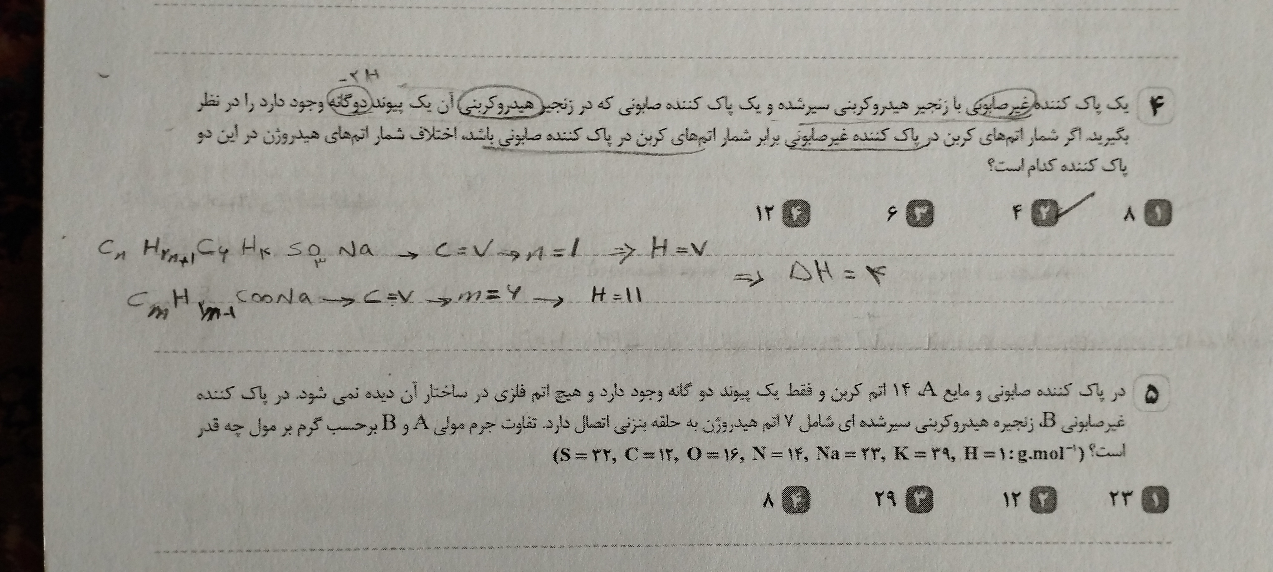میشه از روی پیوند های دوگانه صابونی و غیر صابونی در این سوال جواب رو پیدا کرد فقط این روش در مابقی سوال های این چنین جواب میده ؟