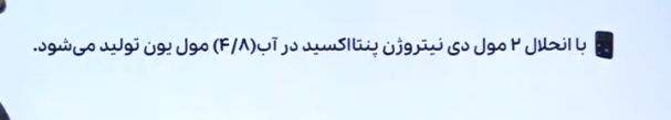 منظورش اینه به طور کلی N2O5 یون هیدرونیوم رو تولید میکنه که درسته نگفته در محلول یون هیدرونیوم رو تولید میکنه در اون صورت باید میگفت افزایش میده