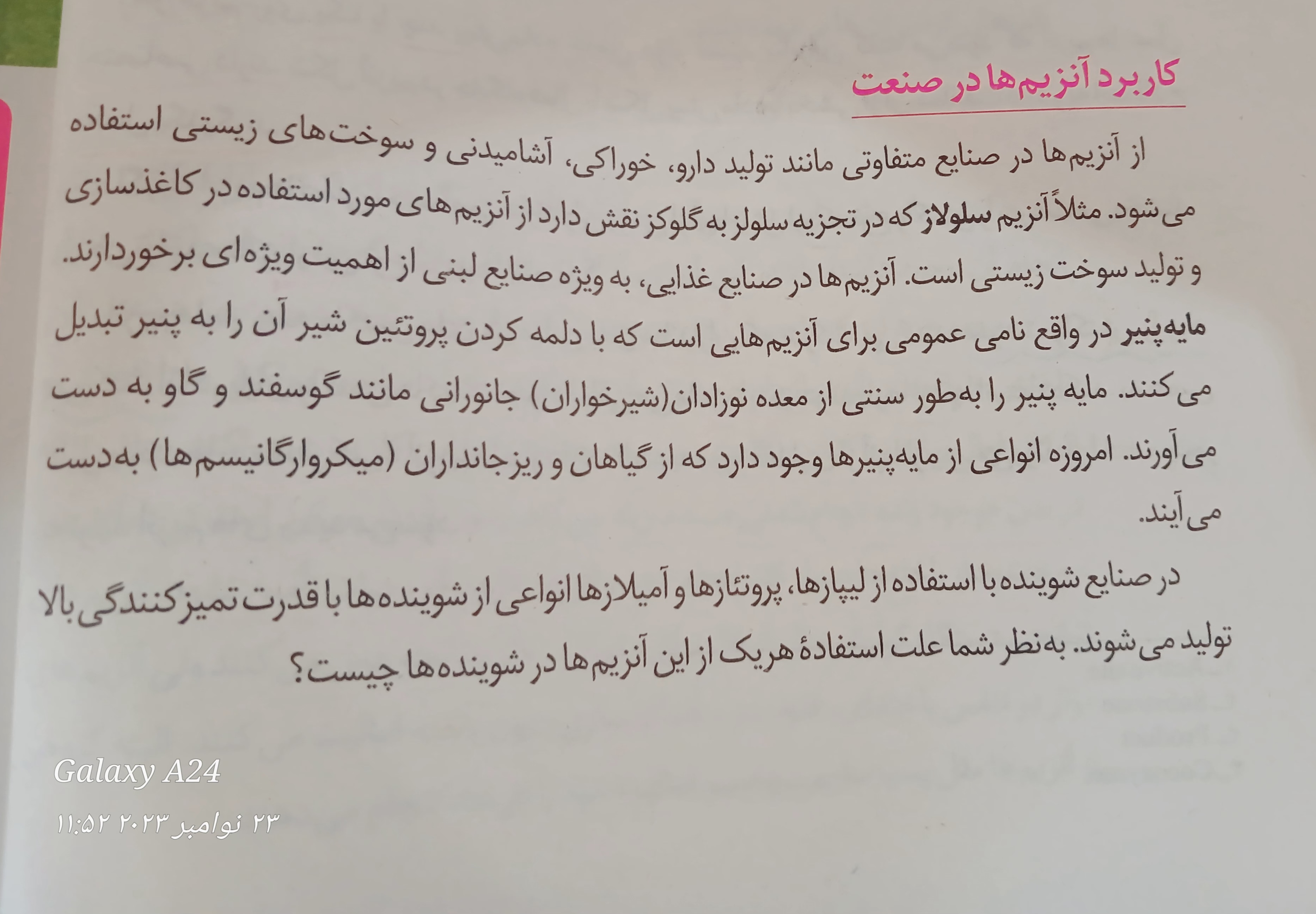 سلام ببخشید بخش کاربرد آنزیم ها در صنعت فیلمش آپلود نشده و جزوه مربوط بهش هم داخل جزوه ها نیست